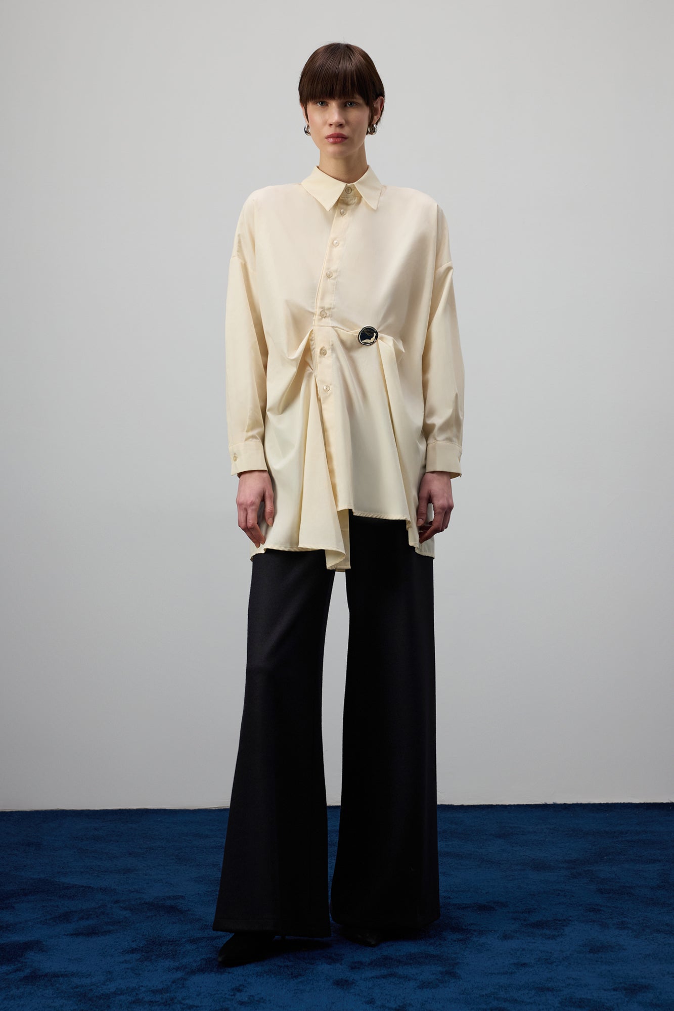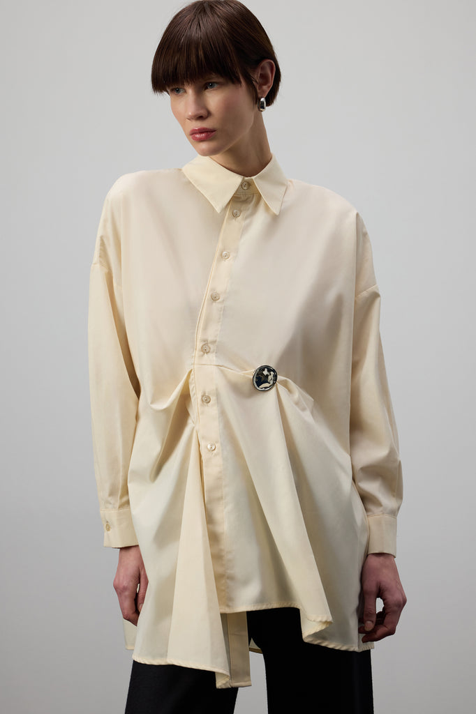PİLELİ ASİMETRİK POPLİN GÖMLEK