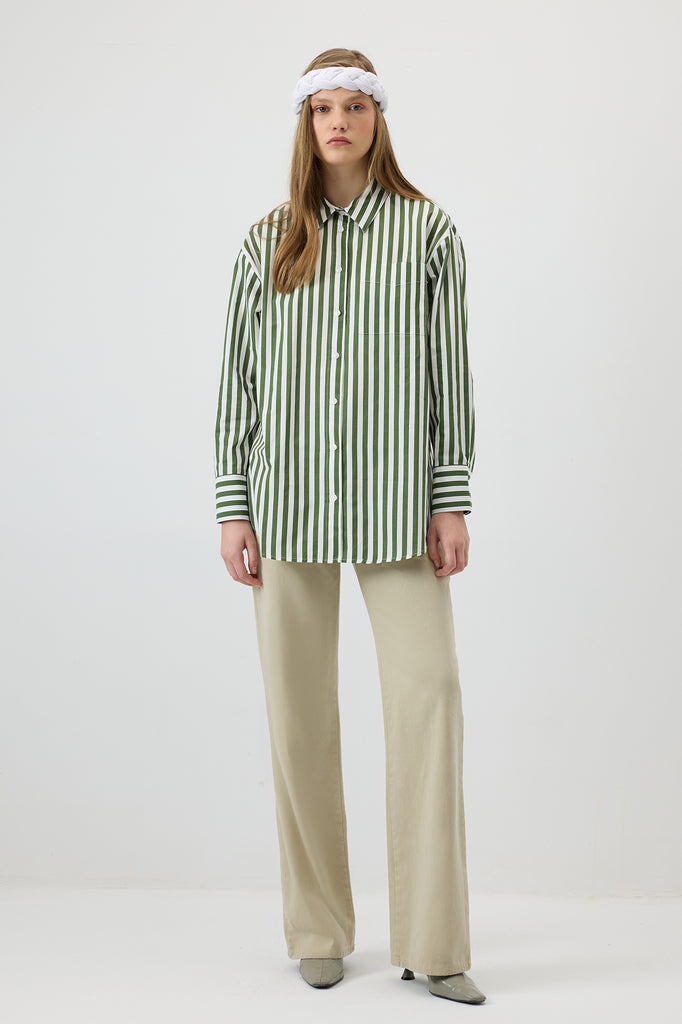 KALIN ÇİZGİLİ OVERSIZE GÖMLEK