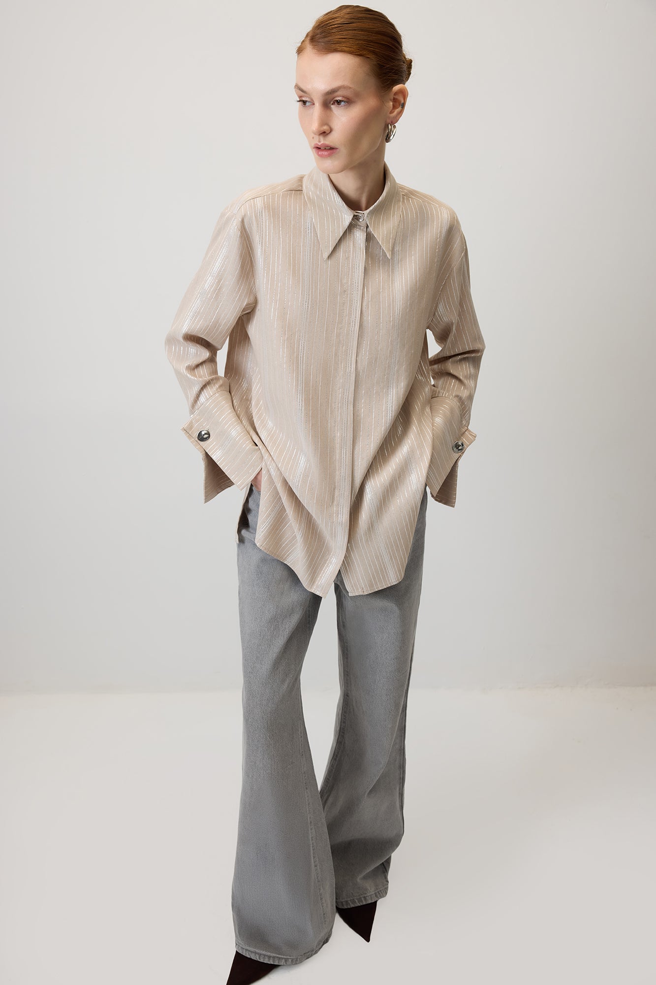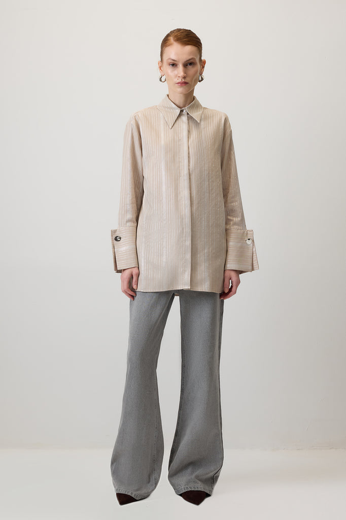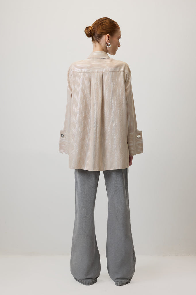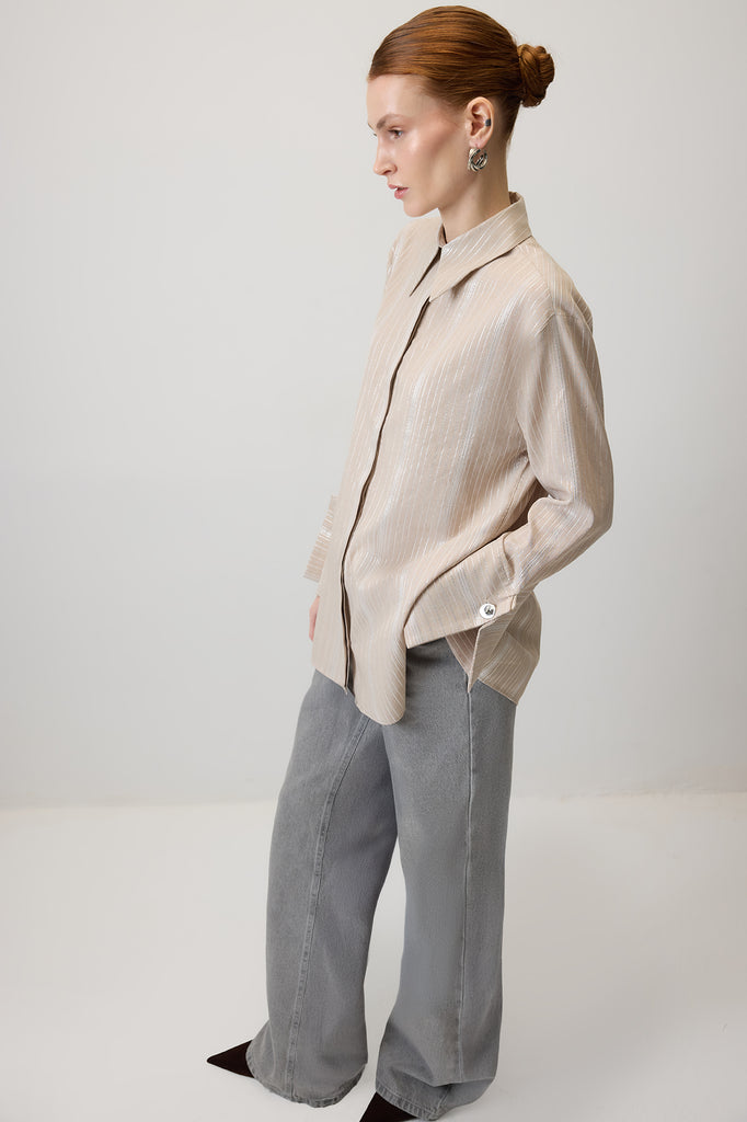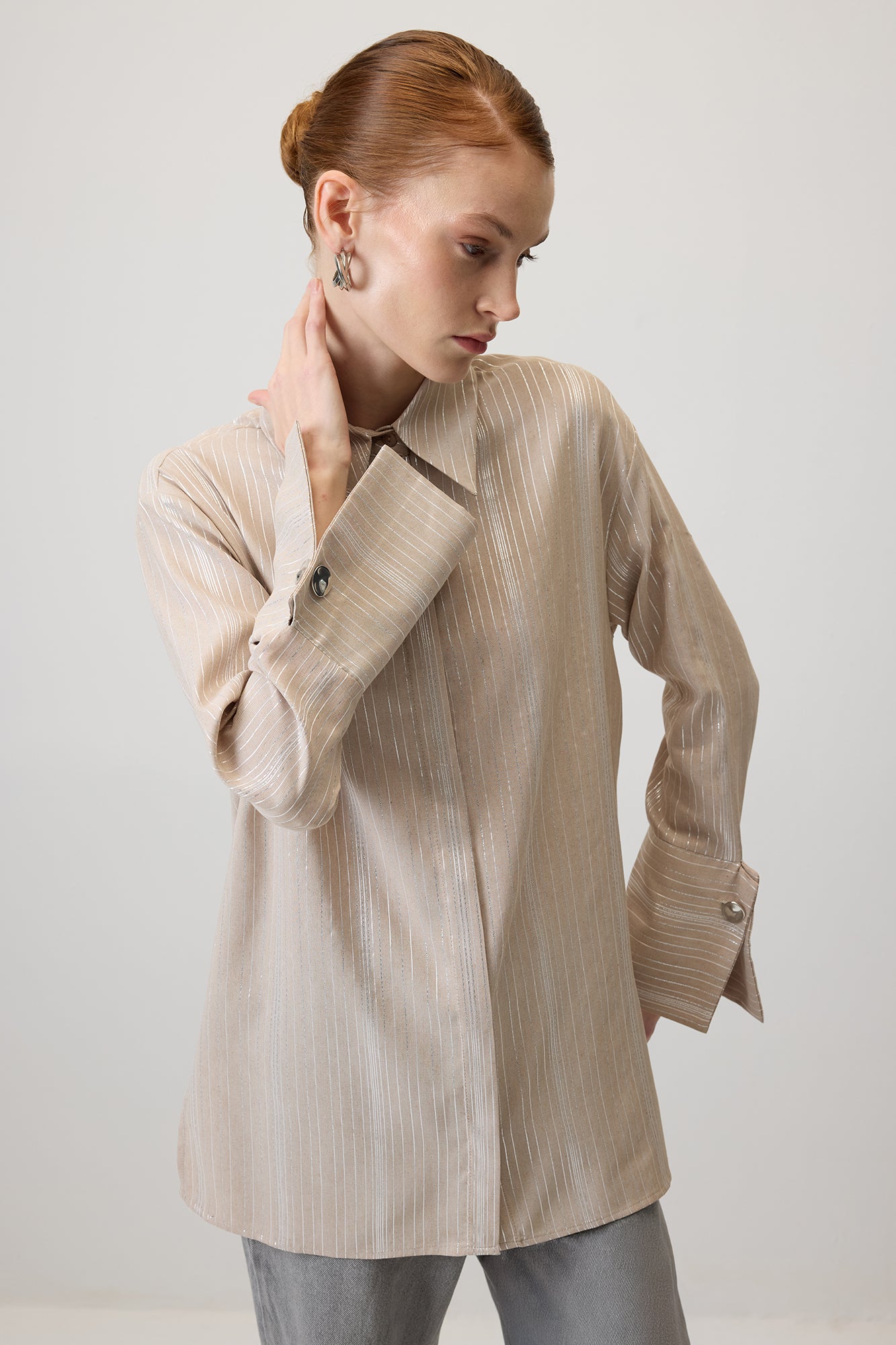 SİMLİ ÇİZGİLİ VİSKON GÖMLEK