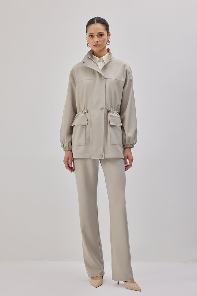 DİK YAKA BÜZGÜLÜ CEKET