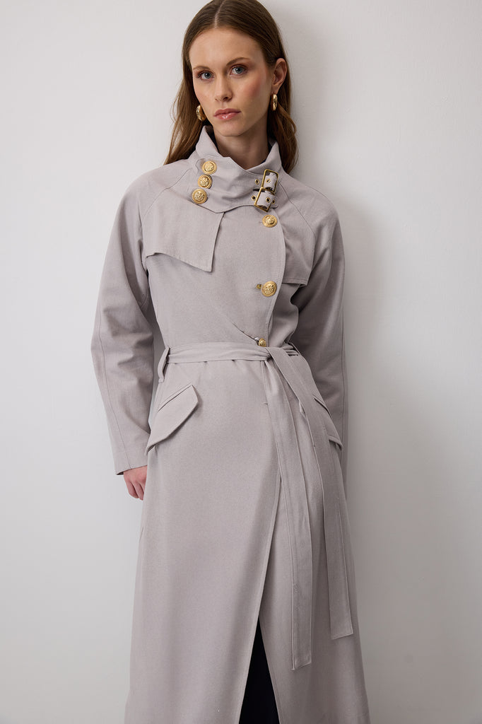 GOLD DÜĞMELİ KRUVAZE KETEN TRENÇKOT