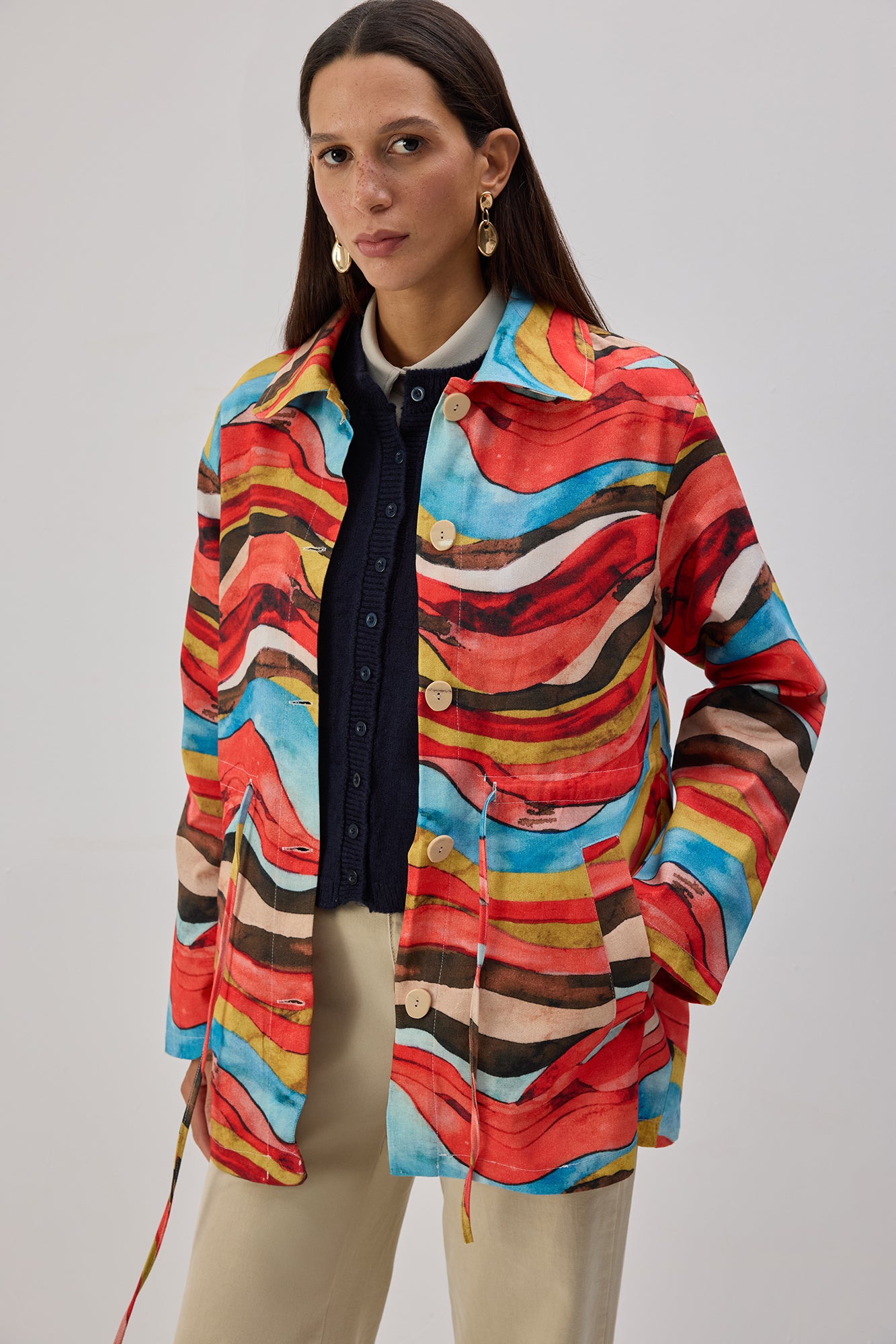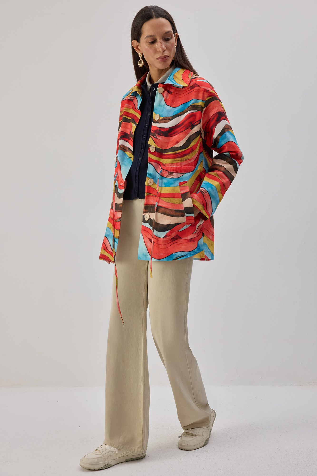 ABSTRACT DESENLİ KISA TRENÇKOT
