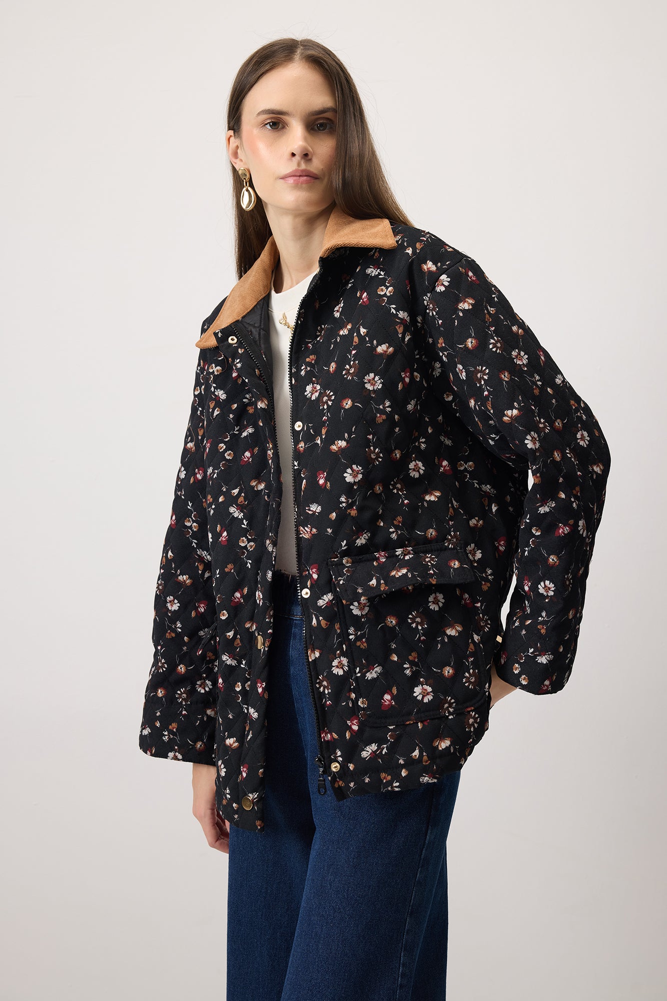 ÇİÇEK DESENLİ GABARDİN CEKET