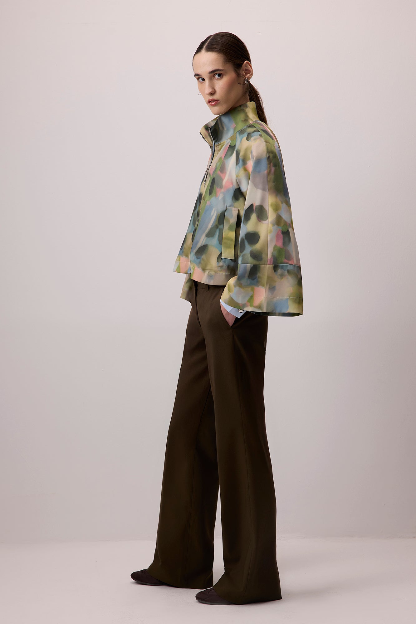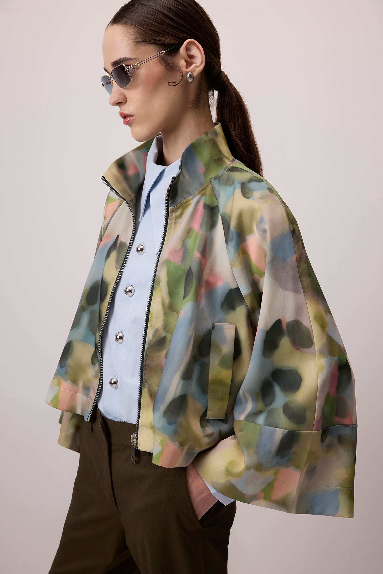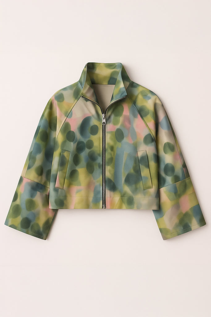 DESENLİ DİK YAKA SATEN CEKET