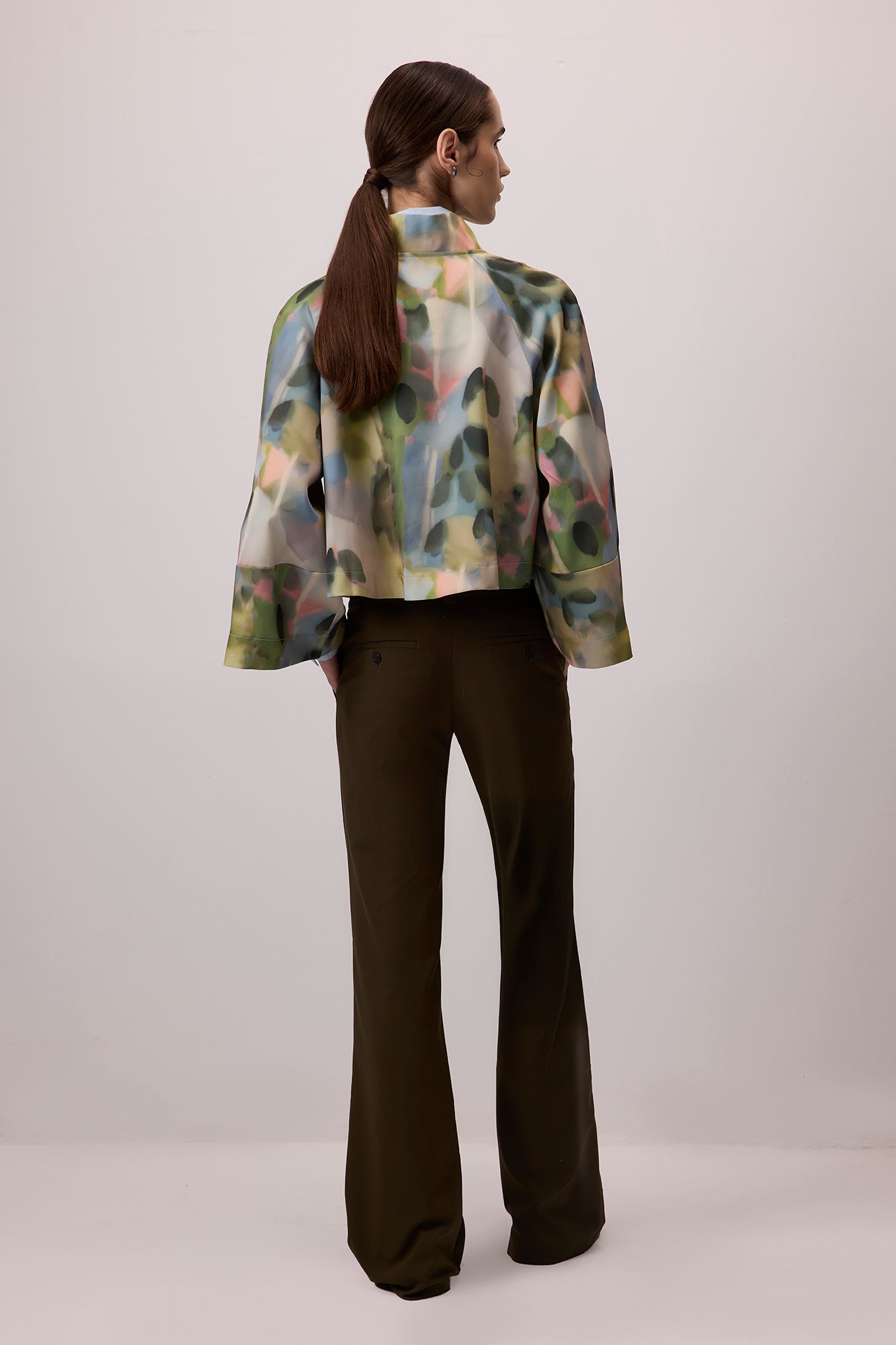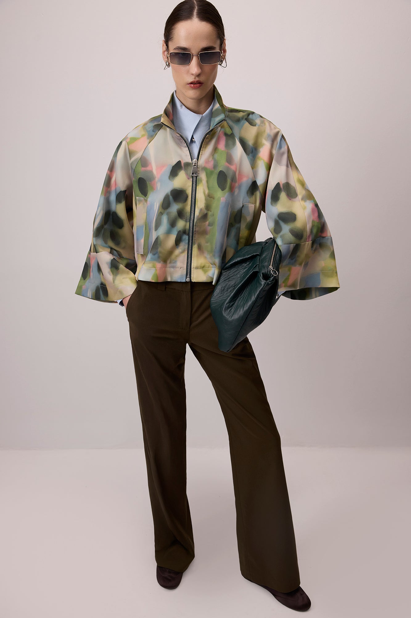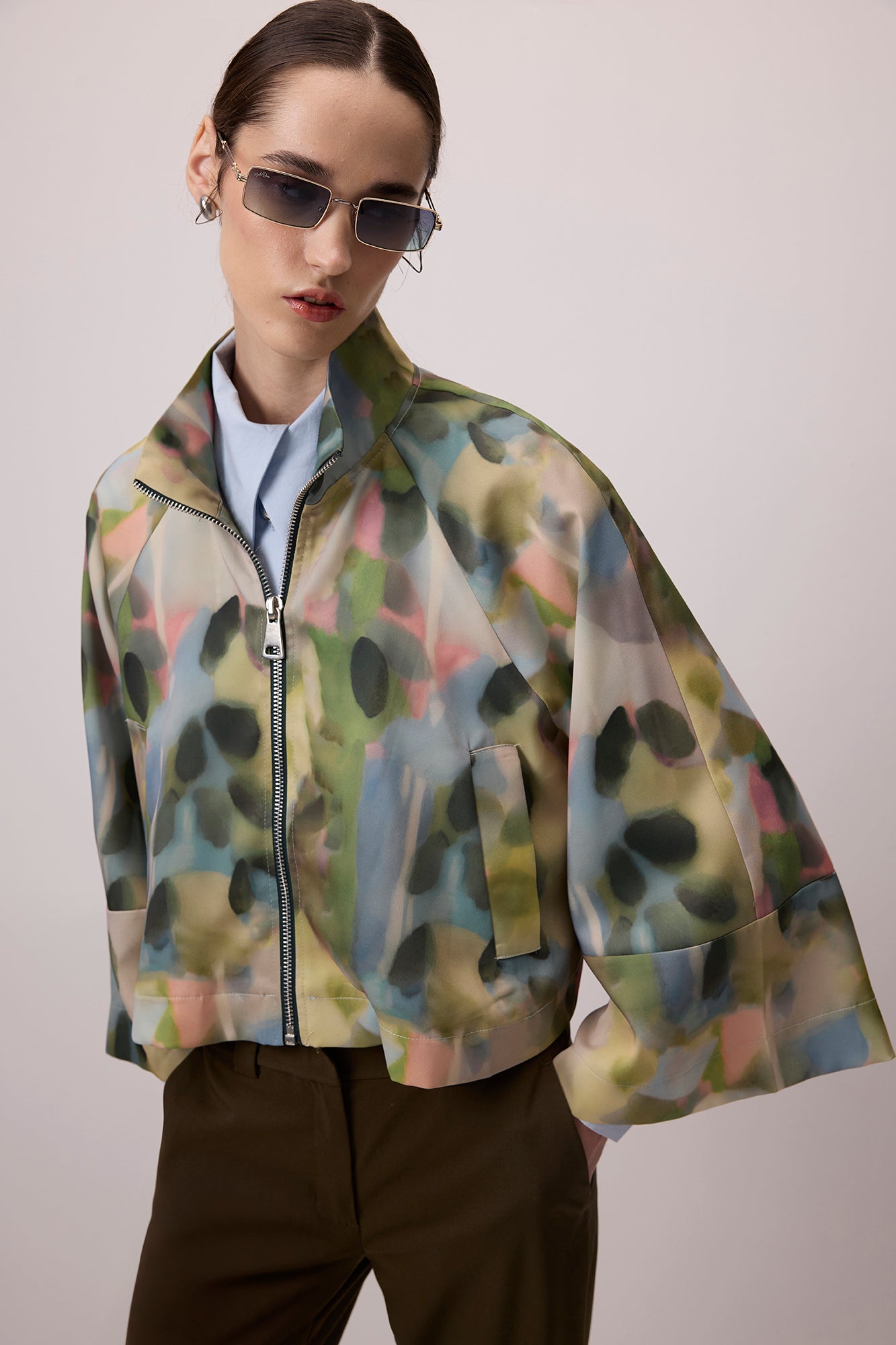 DESENLİ DİK YAKA SATEN CEKET