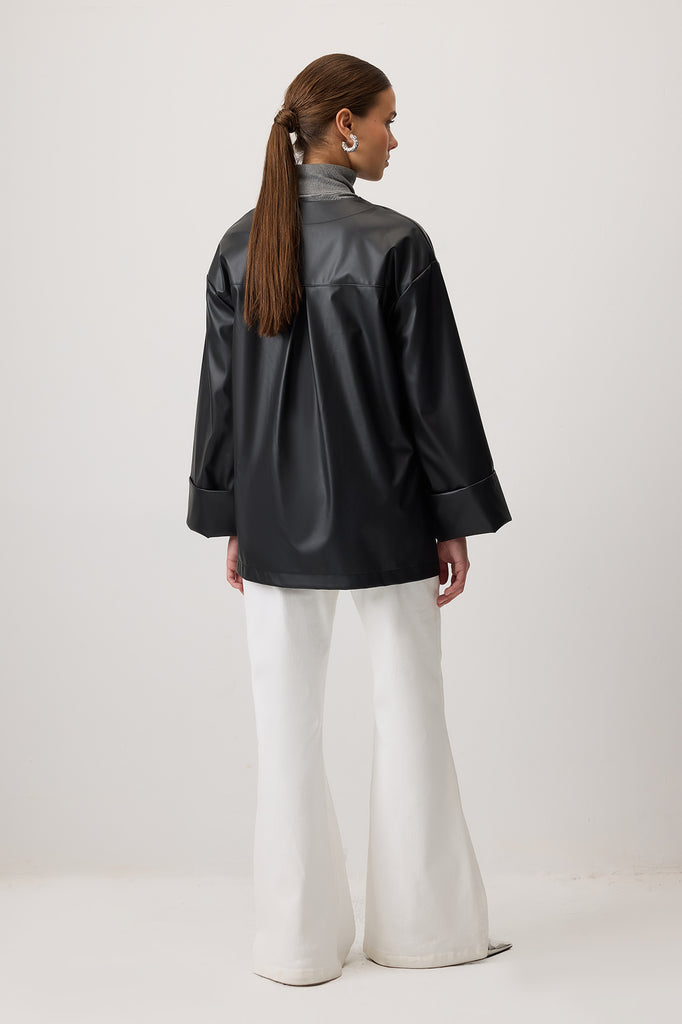 DÜĞMELİ DERİ CEKET