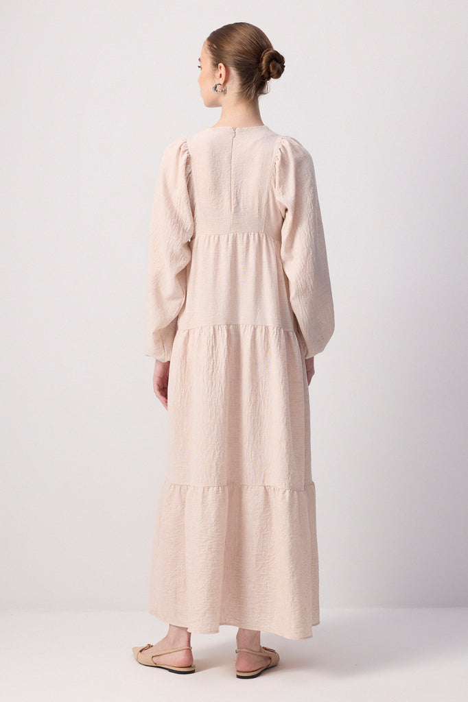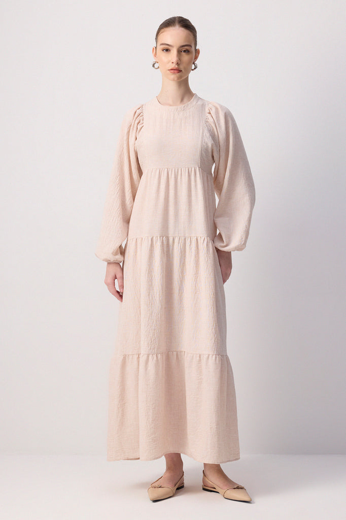 %100 KETEN BÜZGÜLÜ ELBİSE