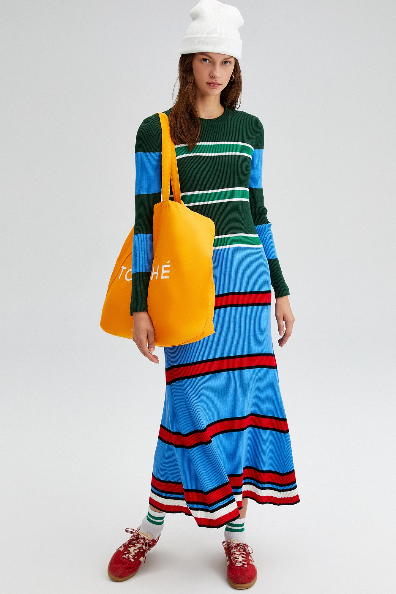 ÇOK RENKLİ ÇİZGİLİ TRİKO ELBİSE