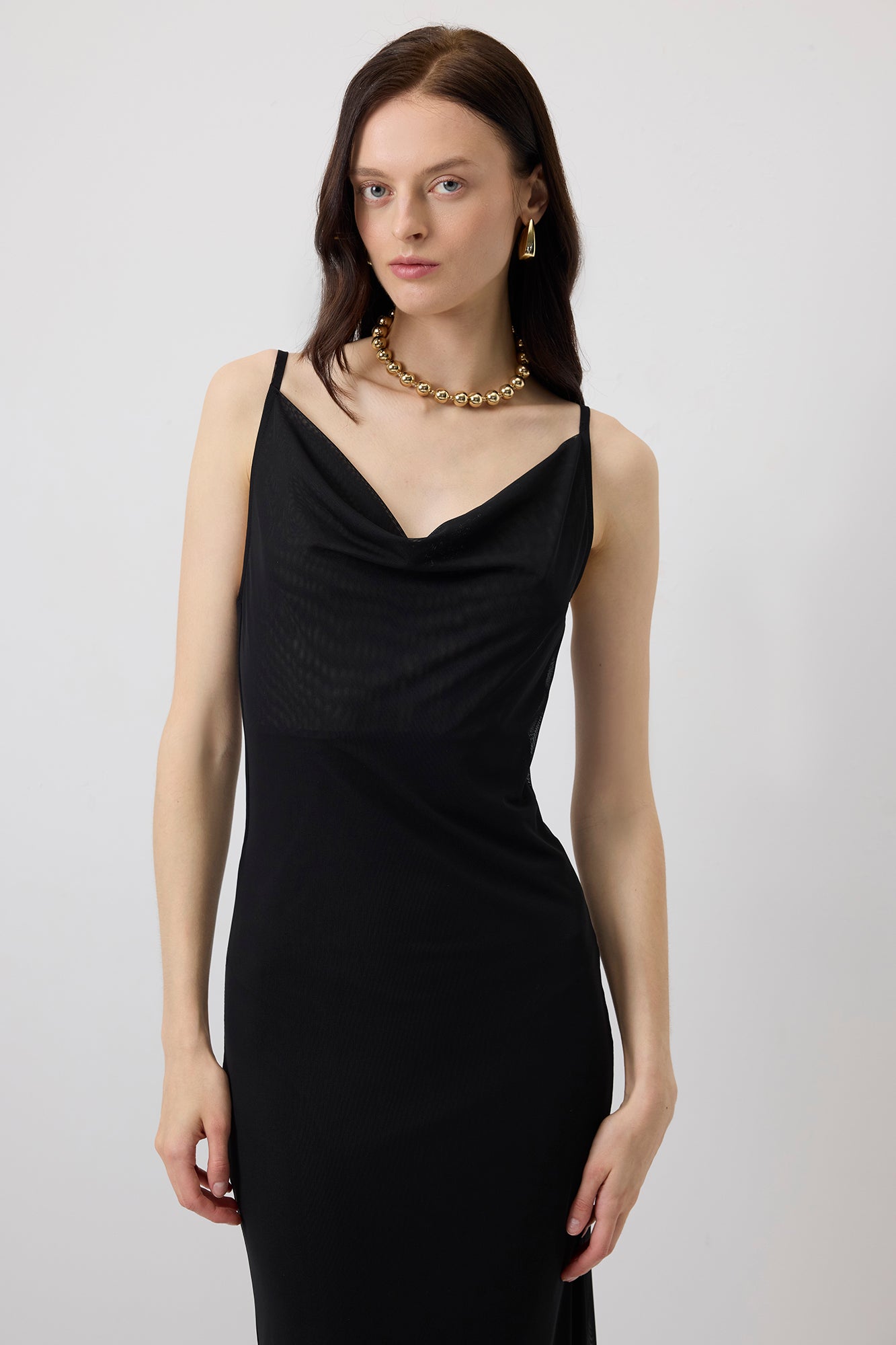 DEGAJE YAKA ASKILI ELBİSE