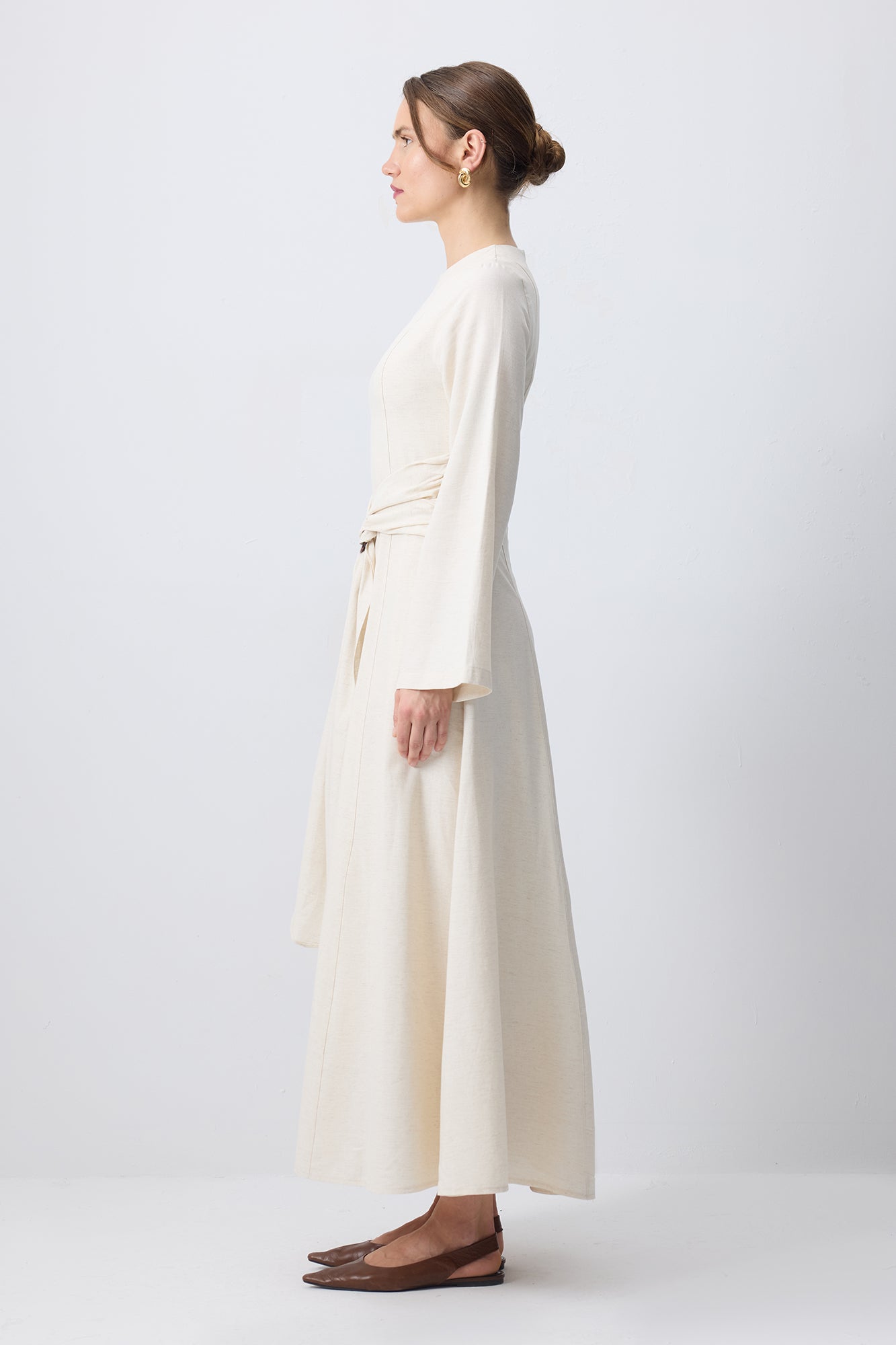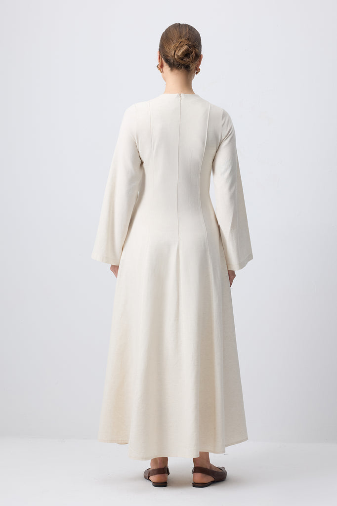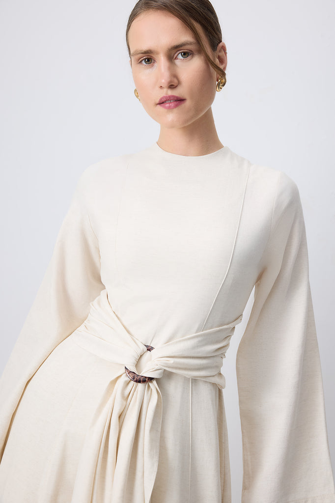 DOĞAL DOKULU KEMER DETAYLI ELBİSE