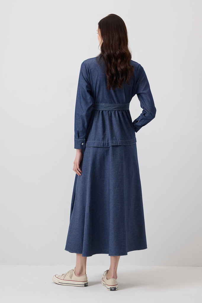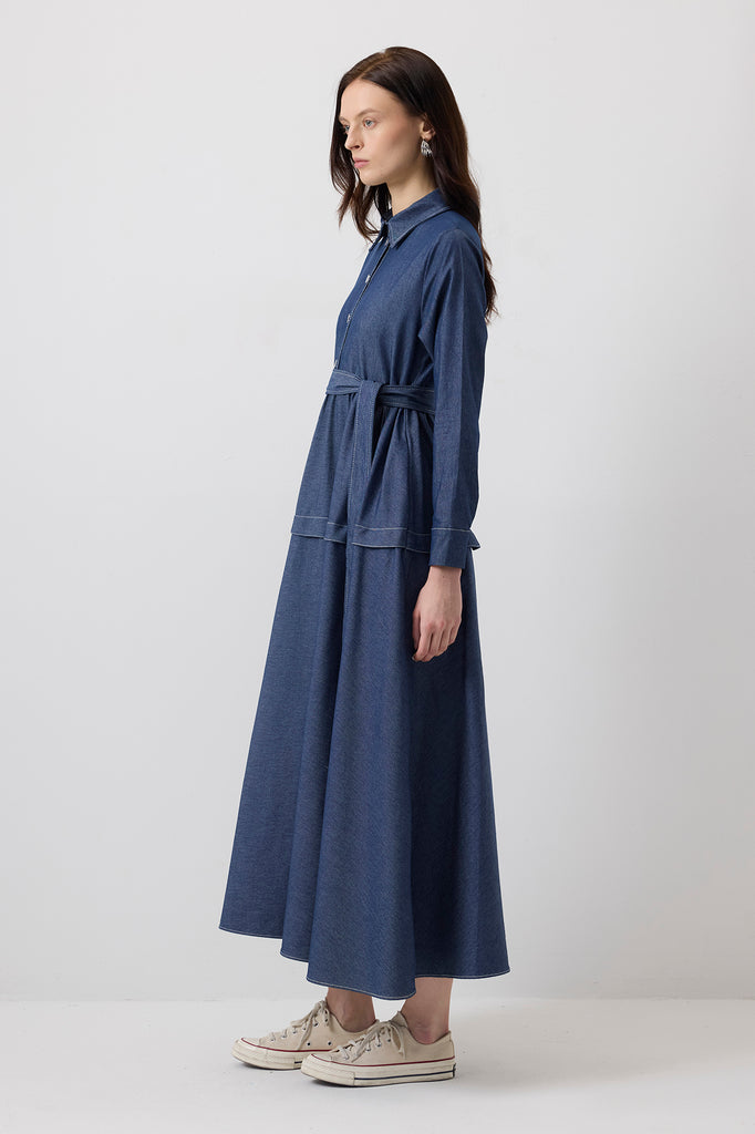 KONTRAST DİKİŞLİ GÖMLEK YAKA ELBİSE