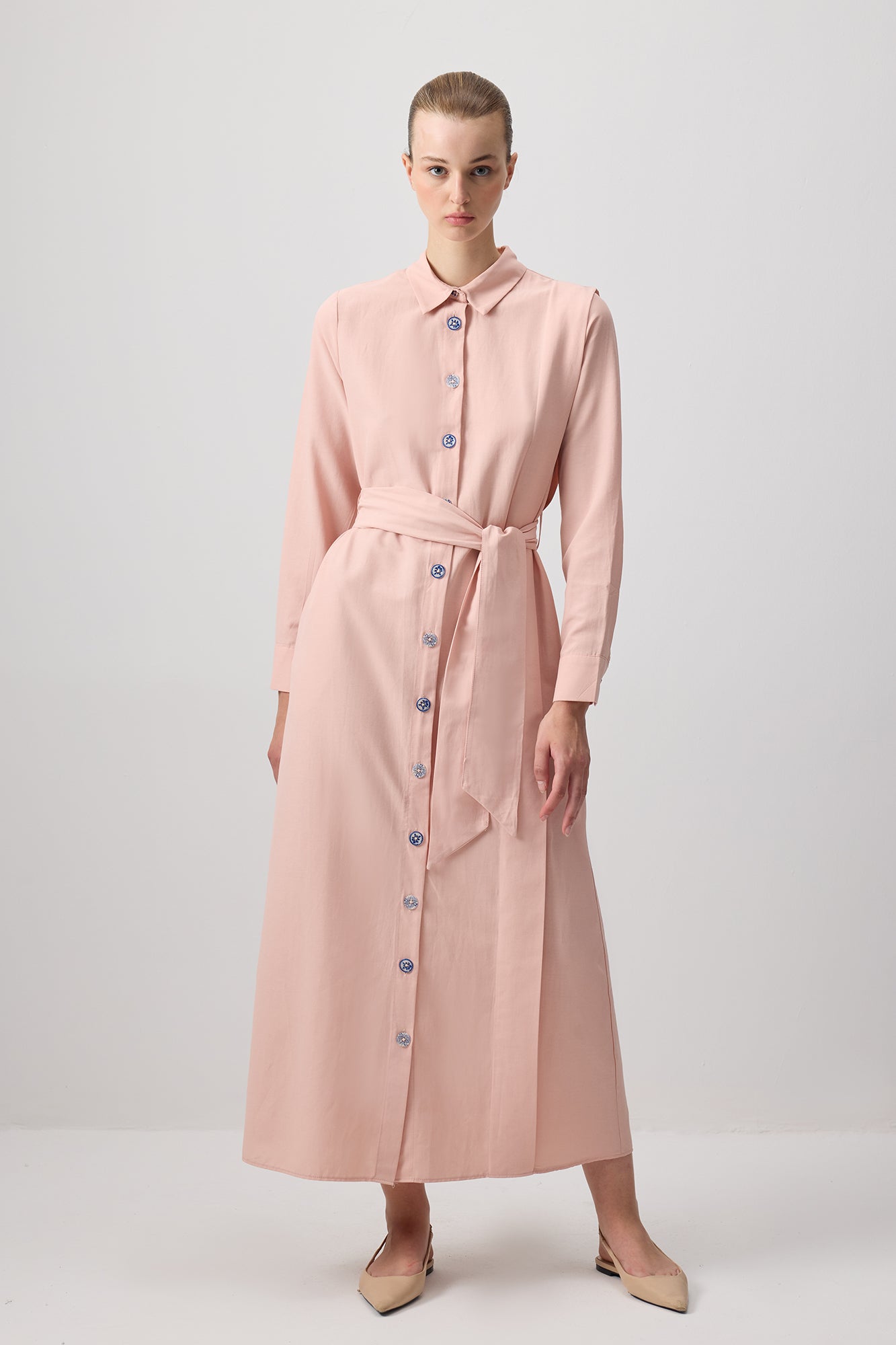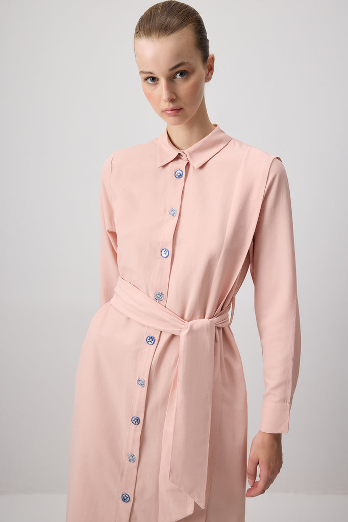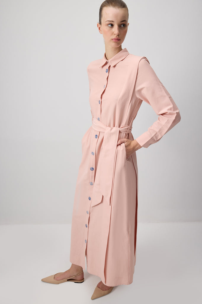 KUŞAKLI POPLİN GÖMLEK ELBİSE