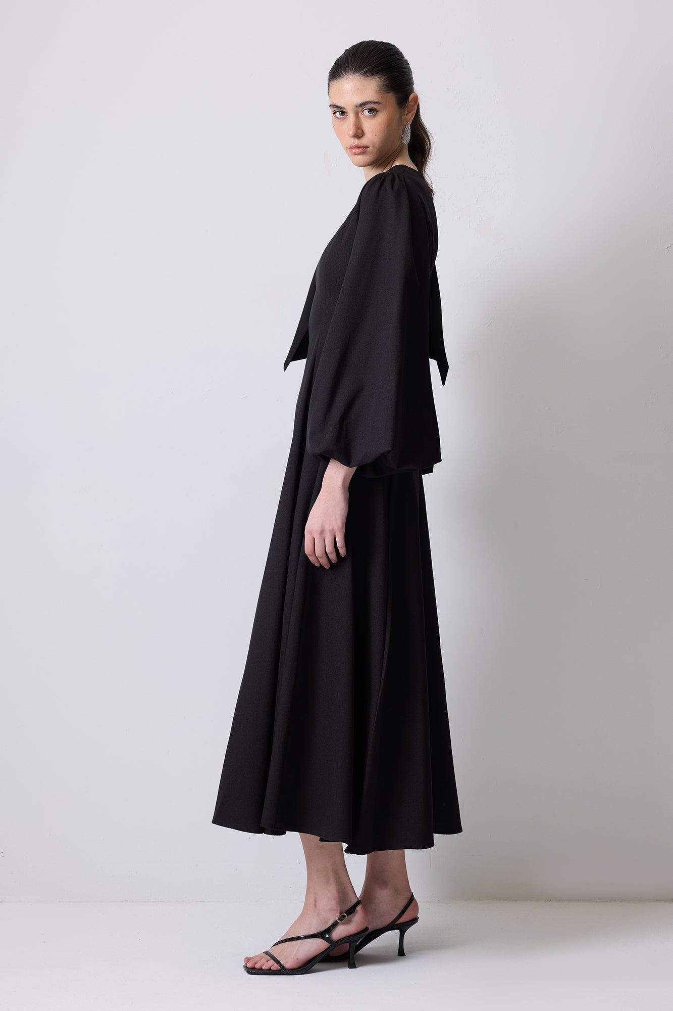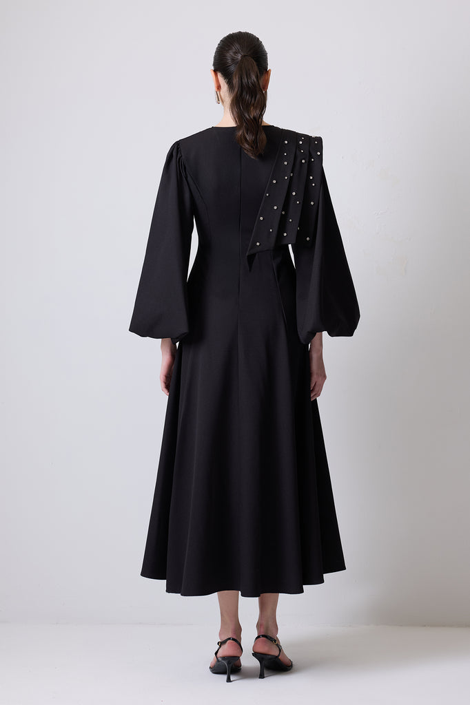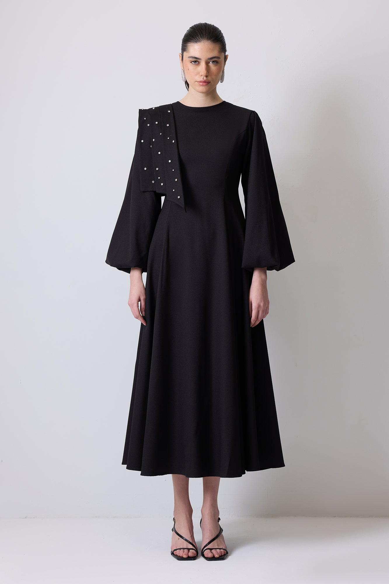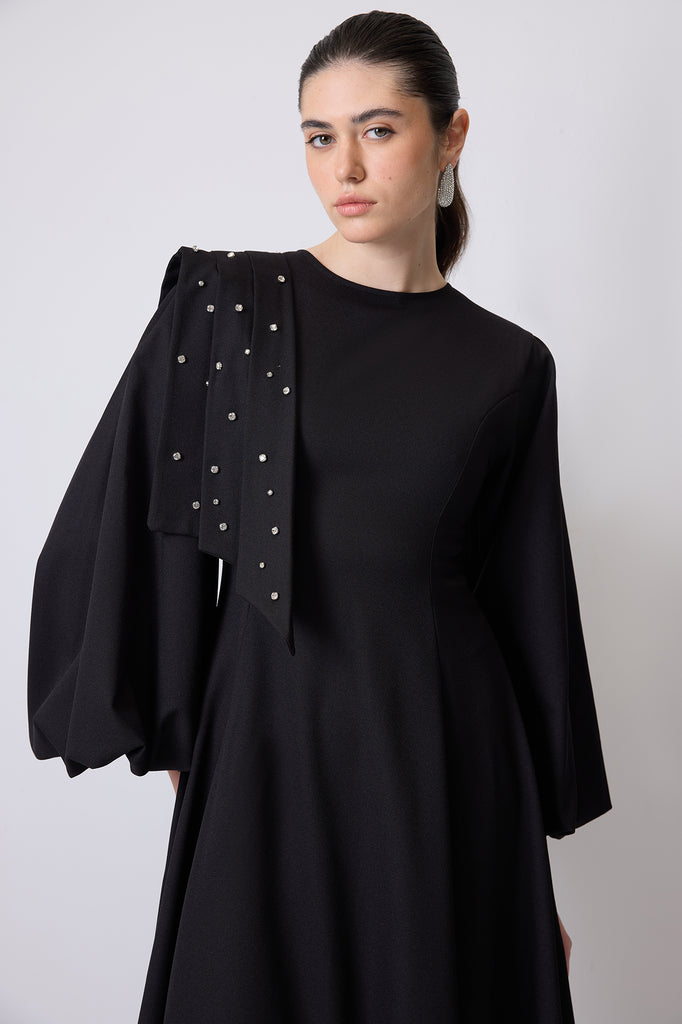 TAŞ İŞLEMELİ BALON KOLLU ELBİSE