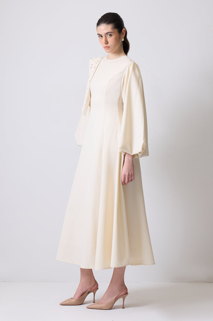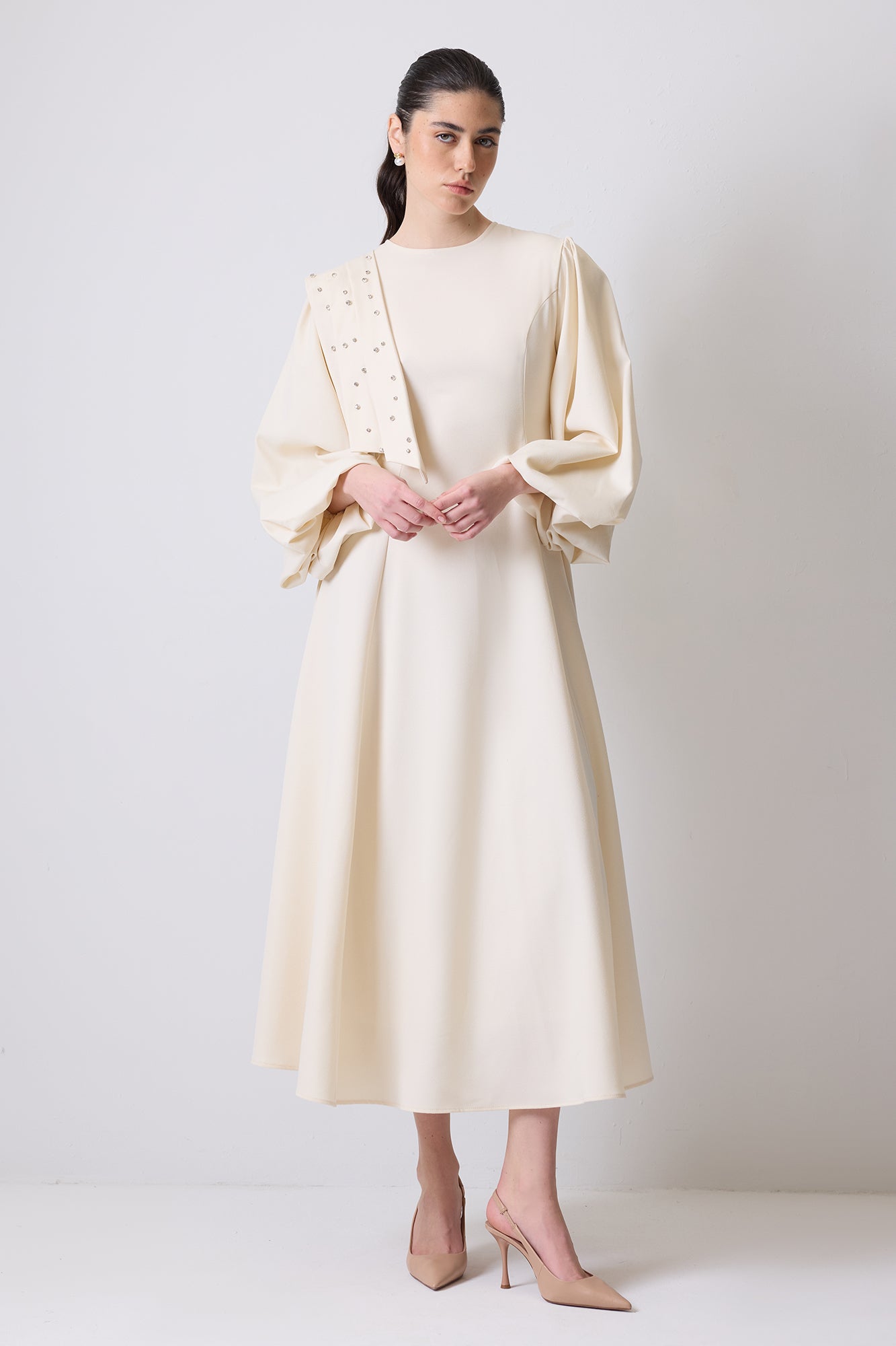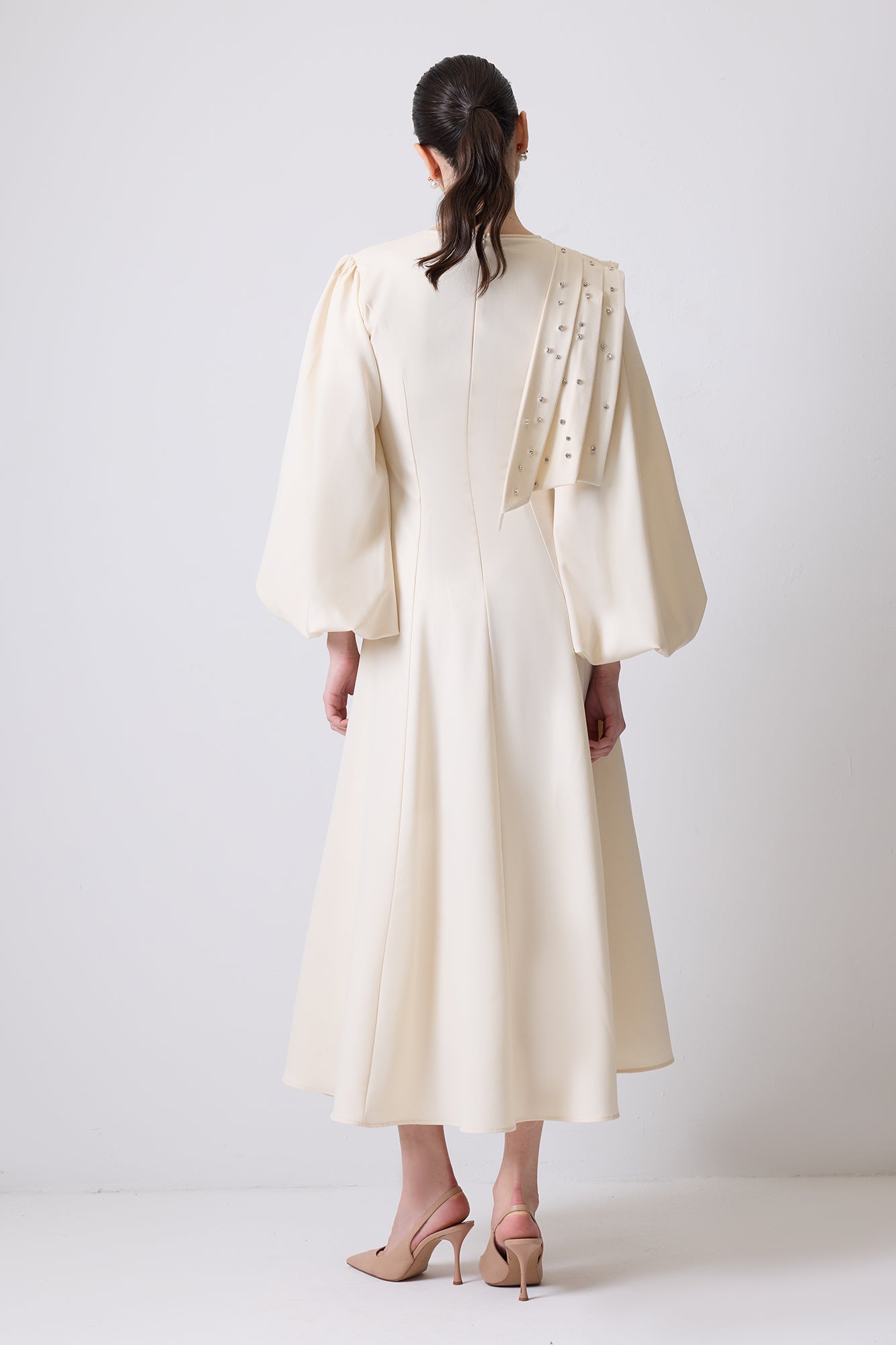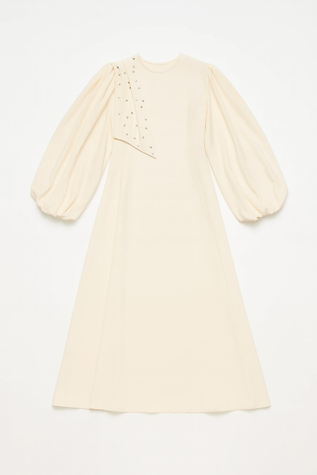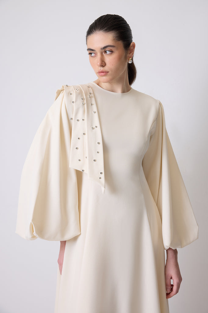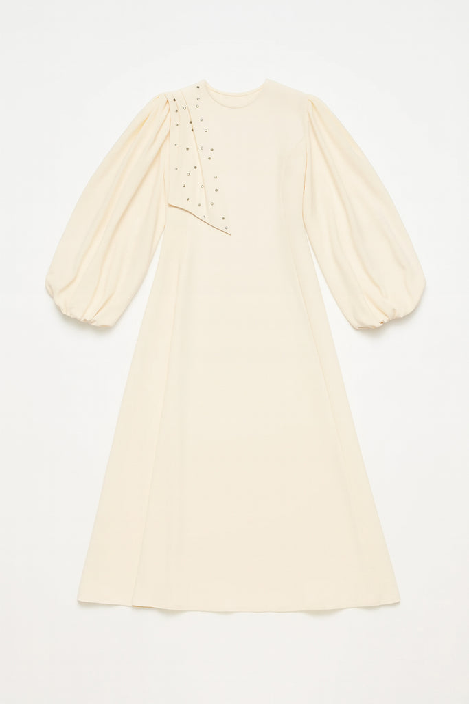 TAŞ İŞLEMELİ BALON KOLLU ELBİSE