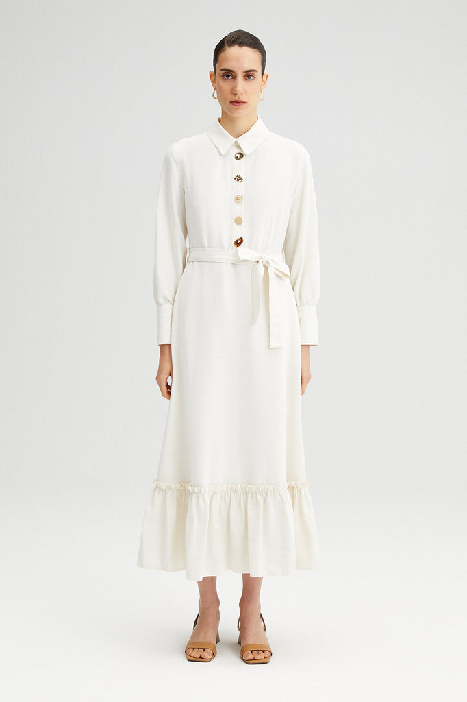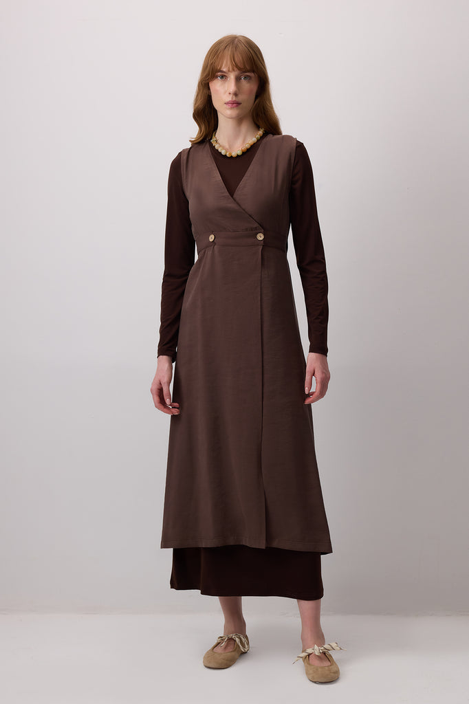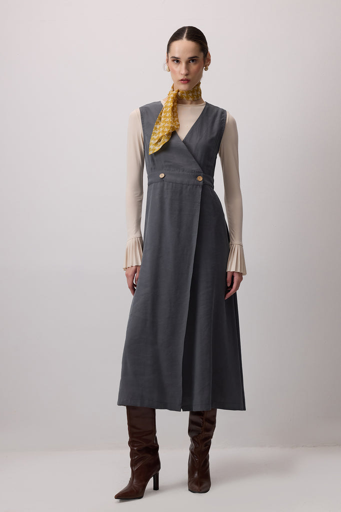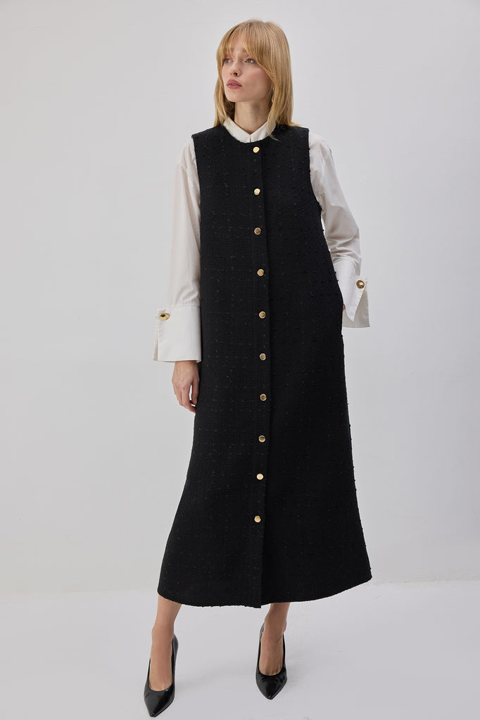 DÜĞME DETAYLI UZUN ELBİSE