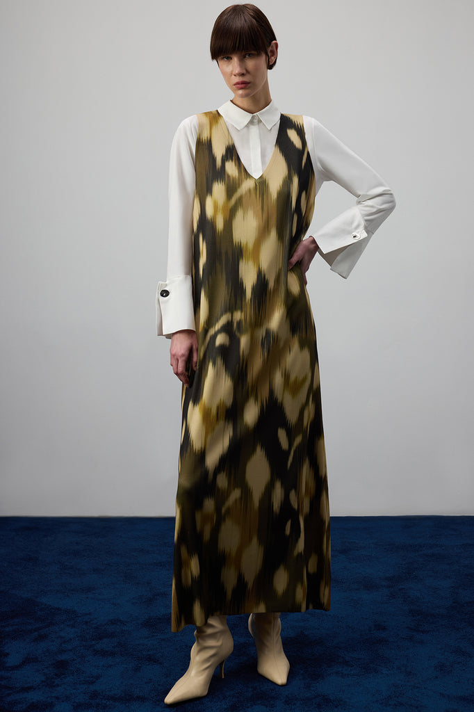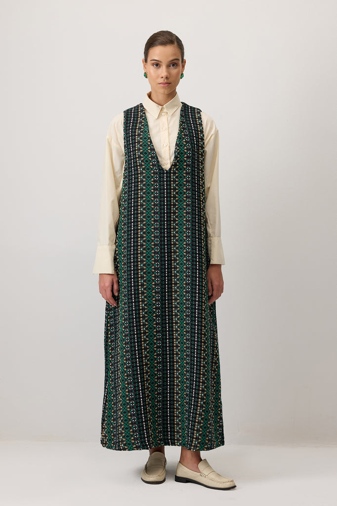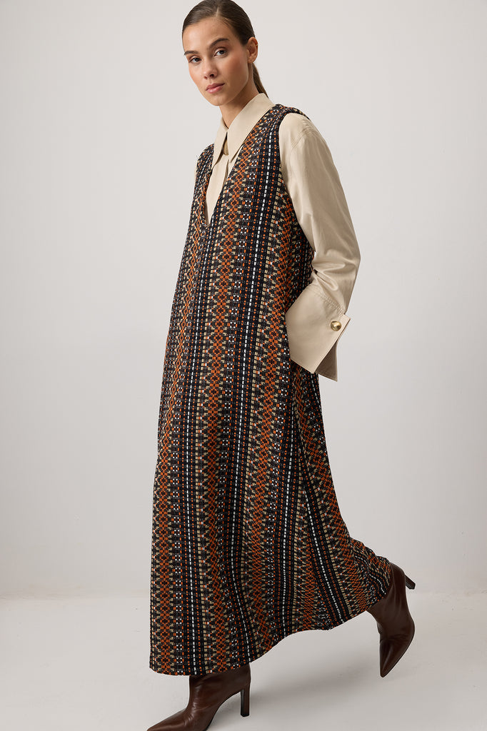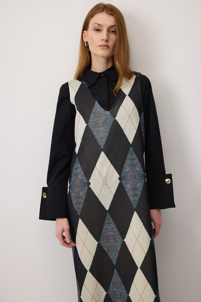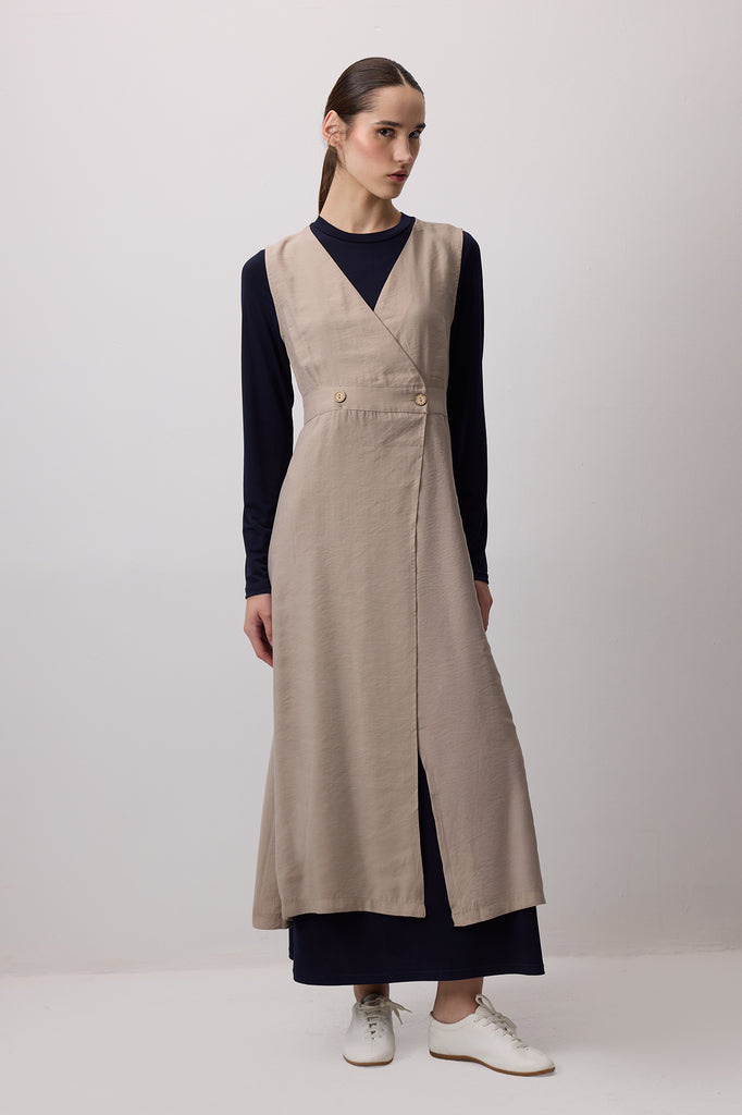 DÜĞME DETAYLI UZUN ELBİSE
