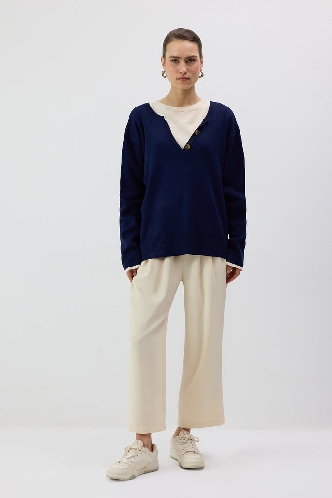 KONTRAST YAKA TRİKO KAZAK