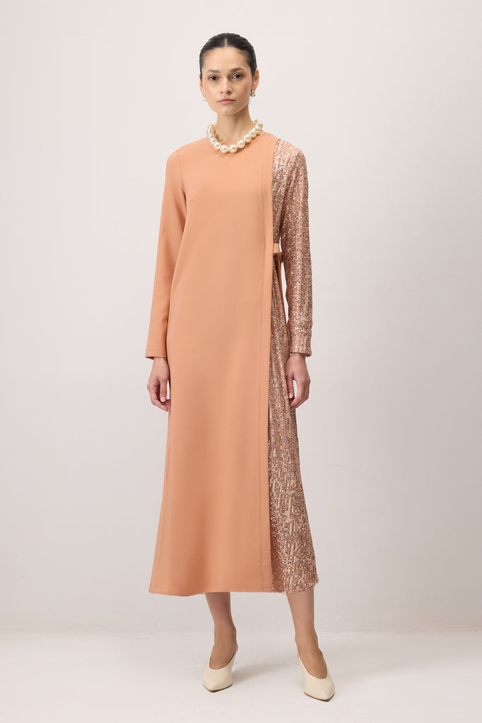 KONTRAST PAYETLİ KREP ELBİSE