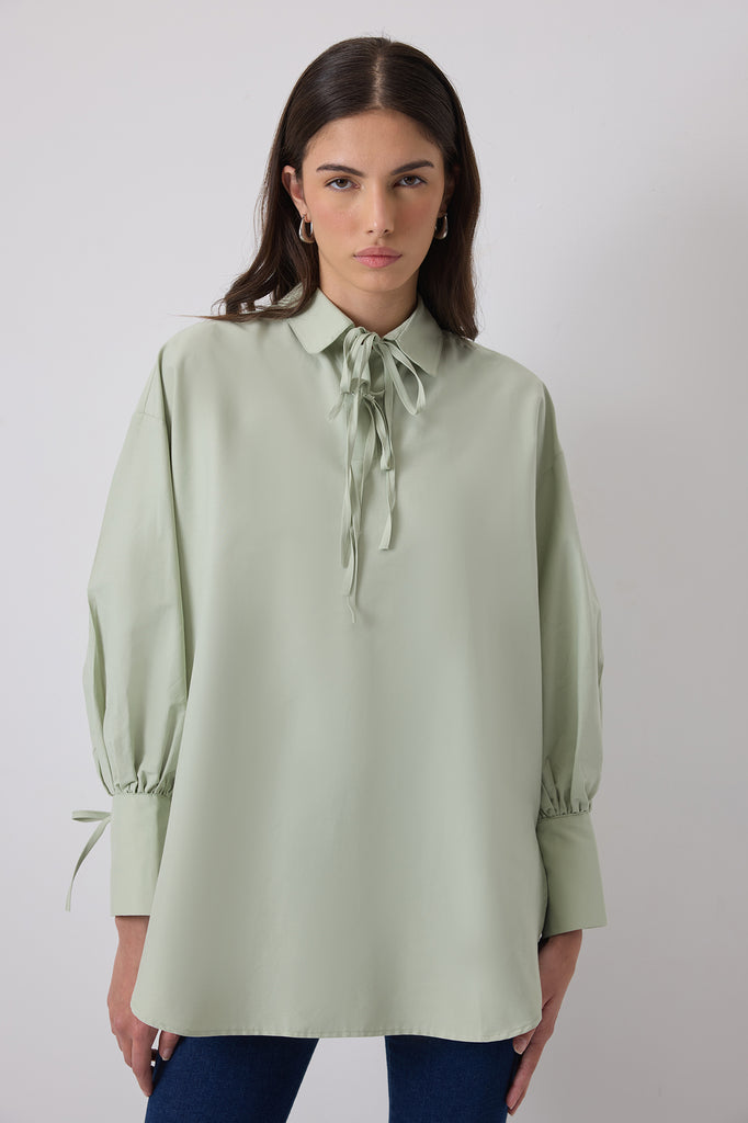 %100 PAMUKLU BİYELİ GÖMLEK YAKA TUNİK