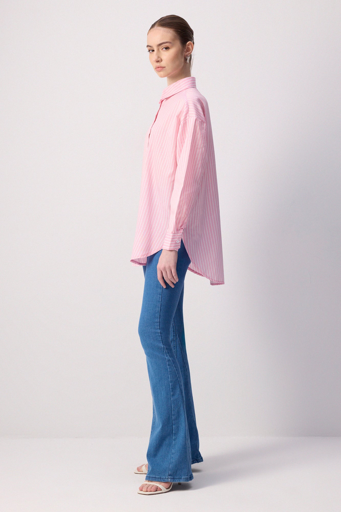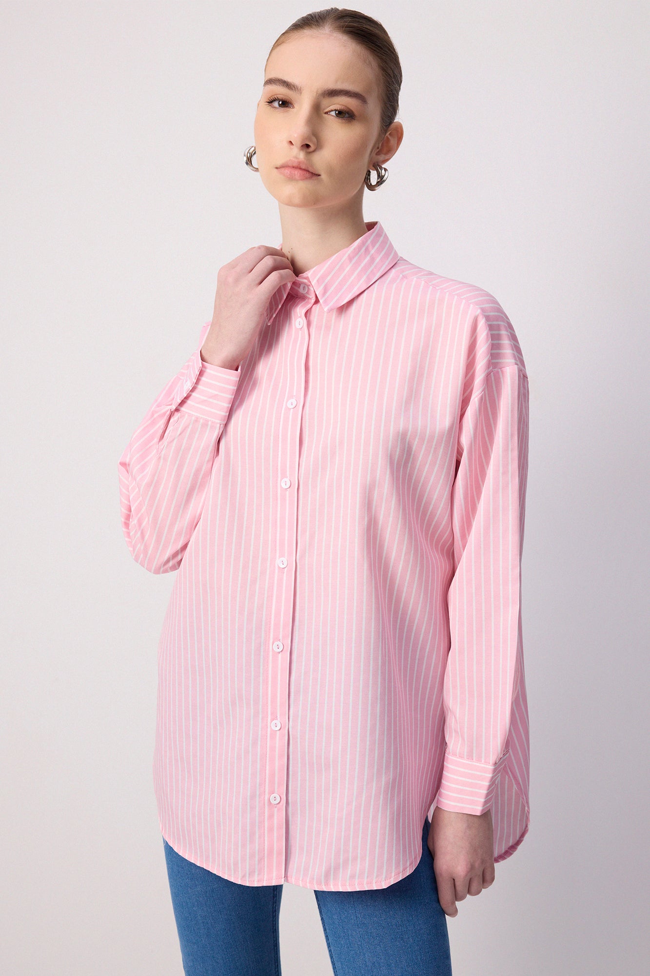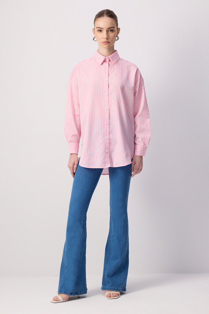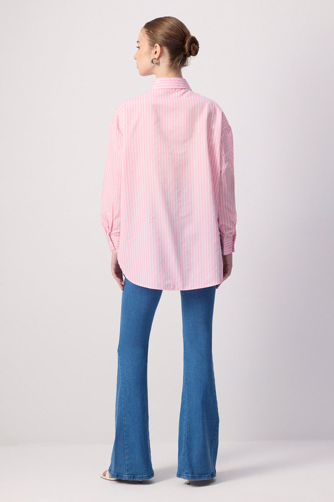 İNCE ÇİZGİLİ OVERSIZE GÖMLEK