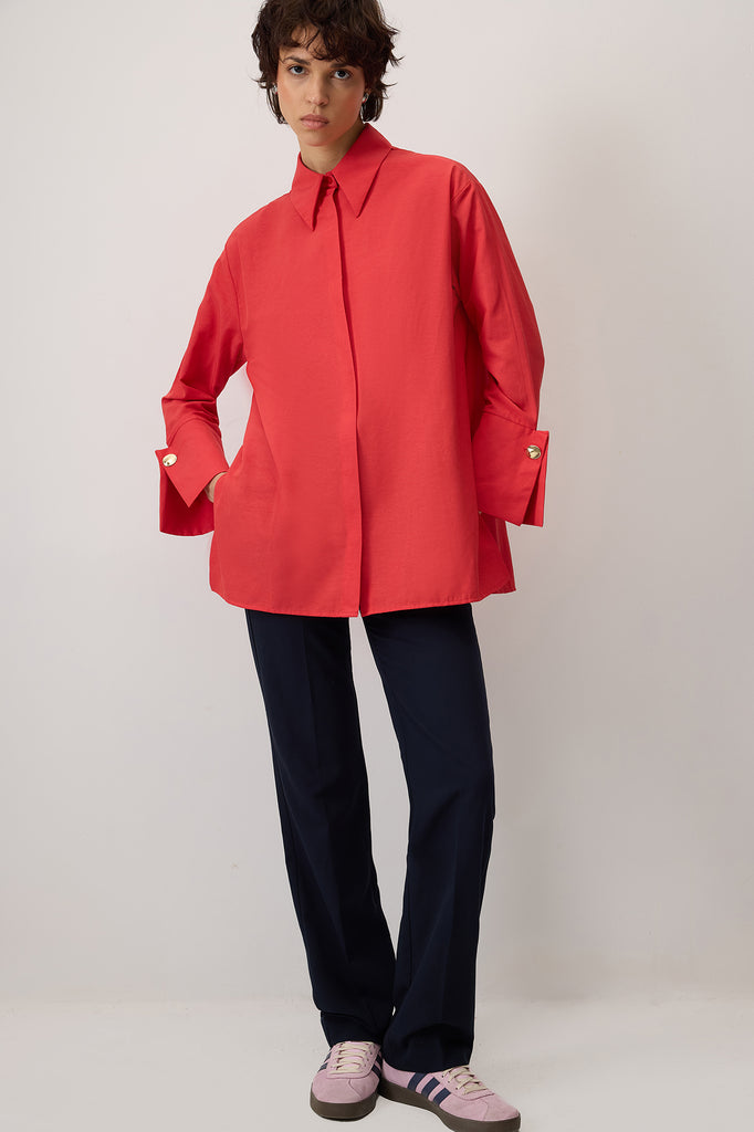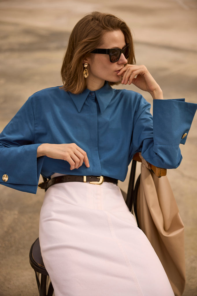 GENİŞ MANŞETLİ POPLİN GÖMLEK