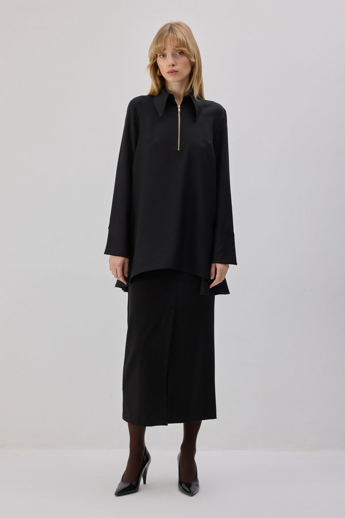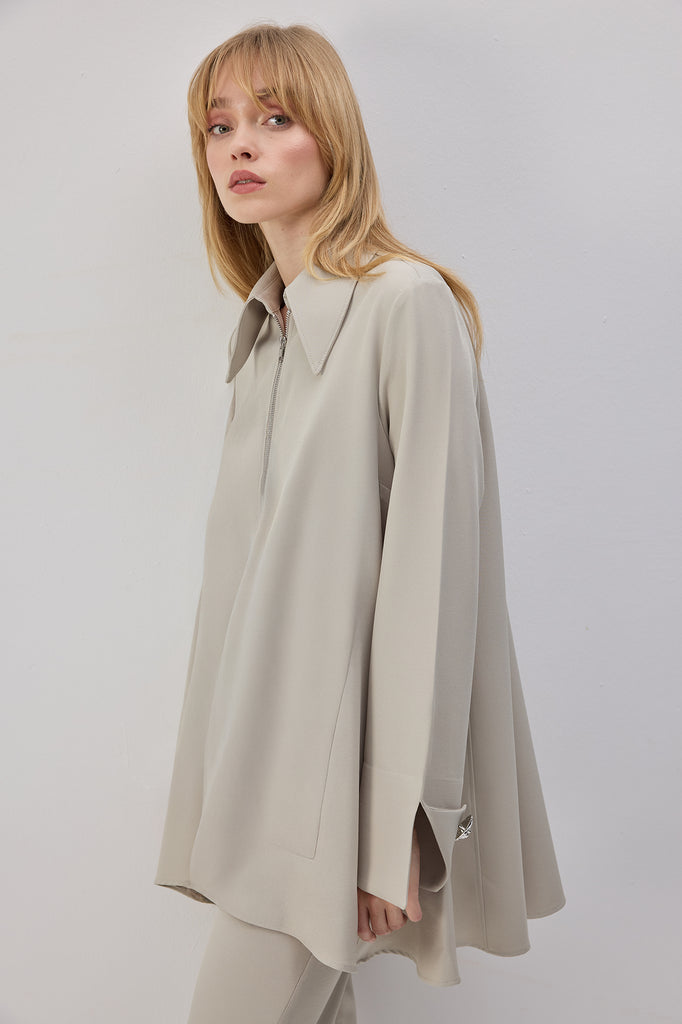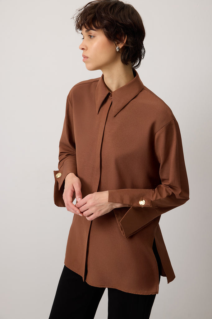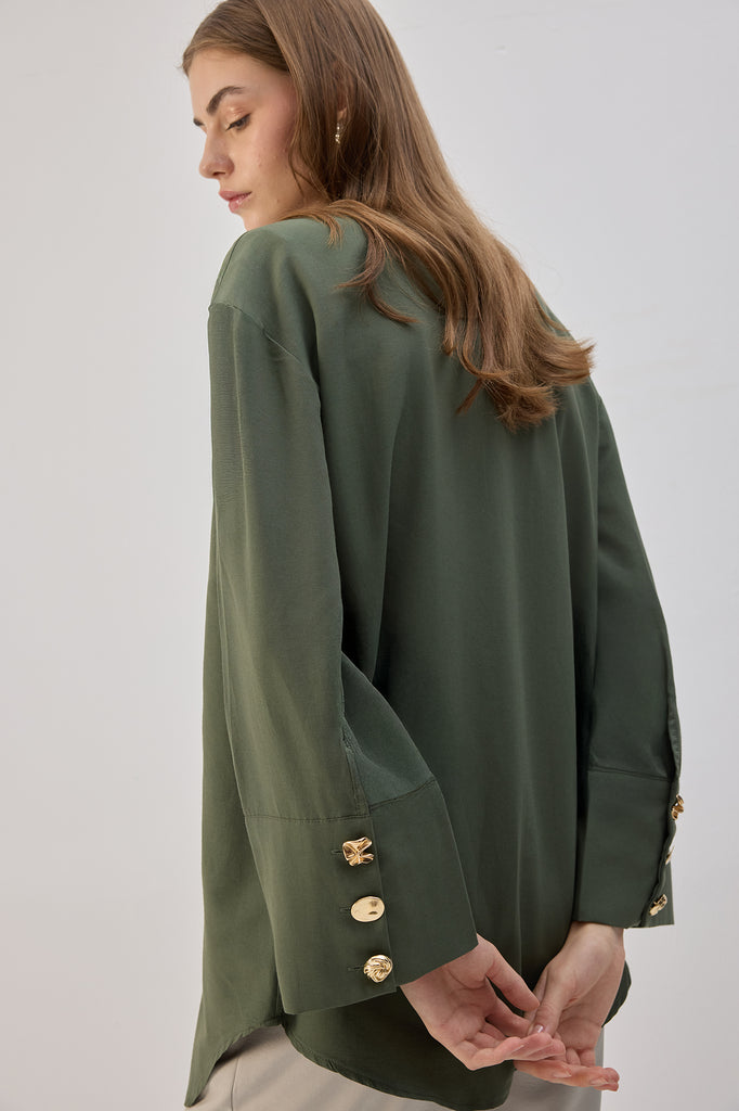 GENİŞ MANŞETLİ KREP GÖMLEK