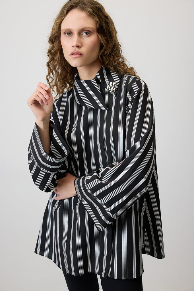 İNCE ÇİZGİLİ OVERSIZE GÖMLEK