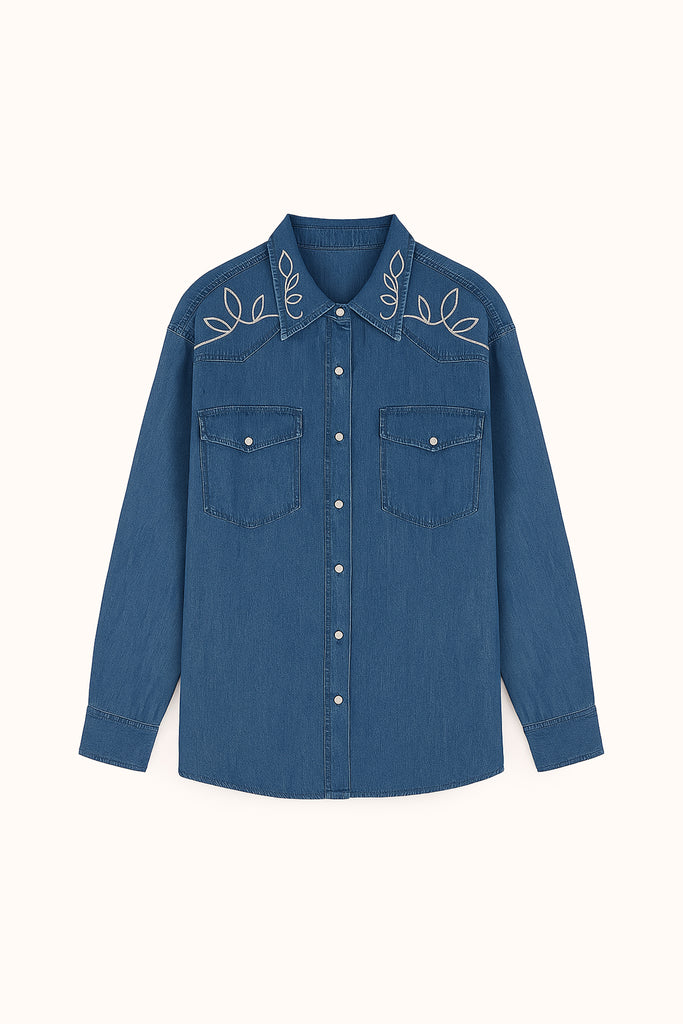 APLİKE NAKIŞLI DENIM GÖMLEK