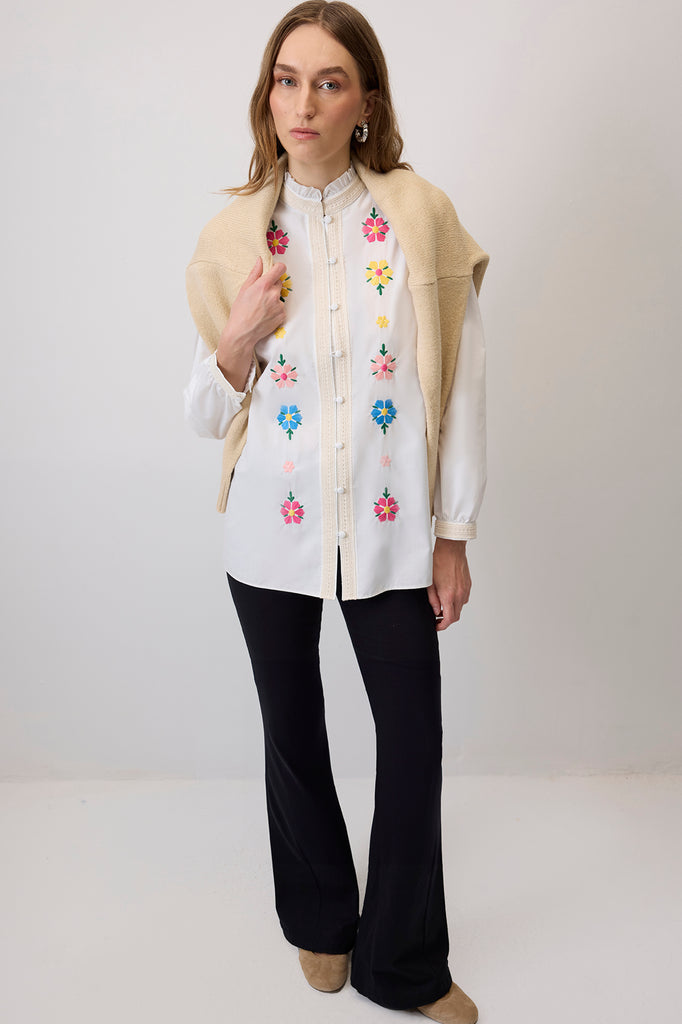 ÇİÇEK NAKIŞLI POPLİN GÖMLEK