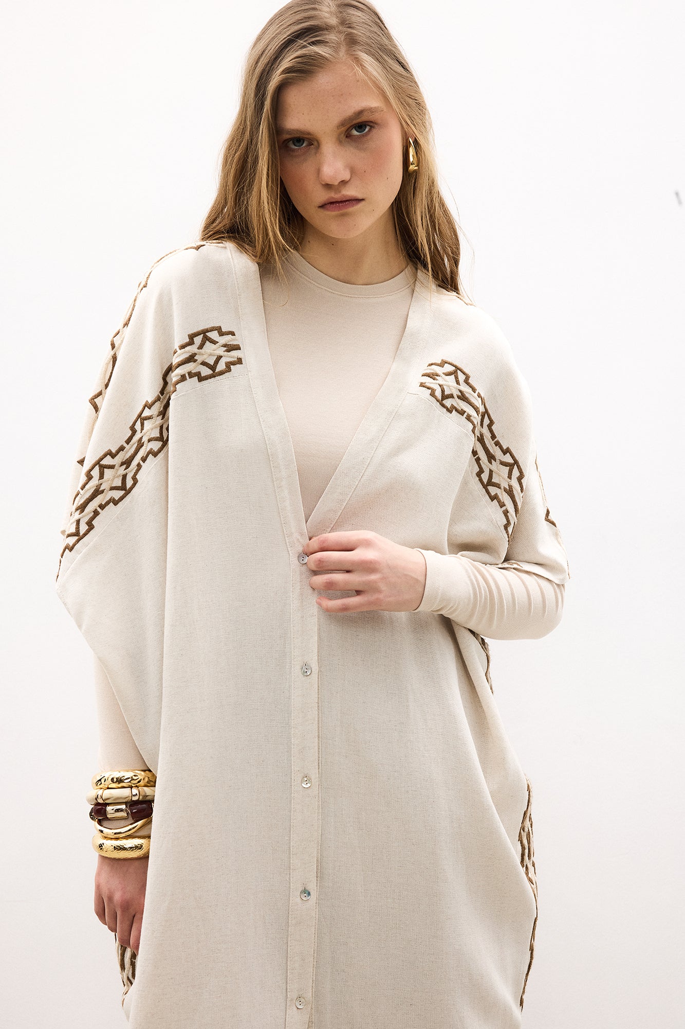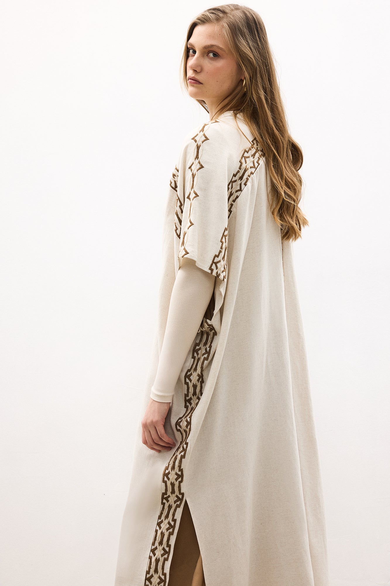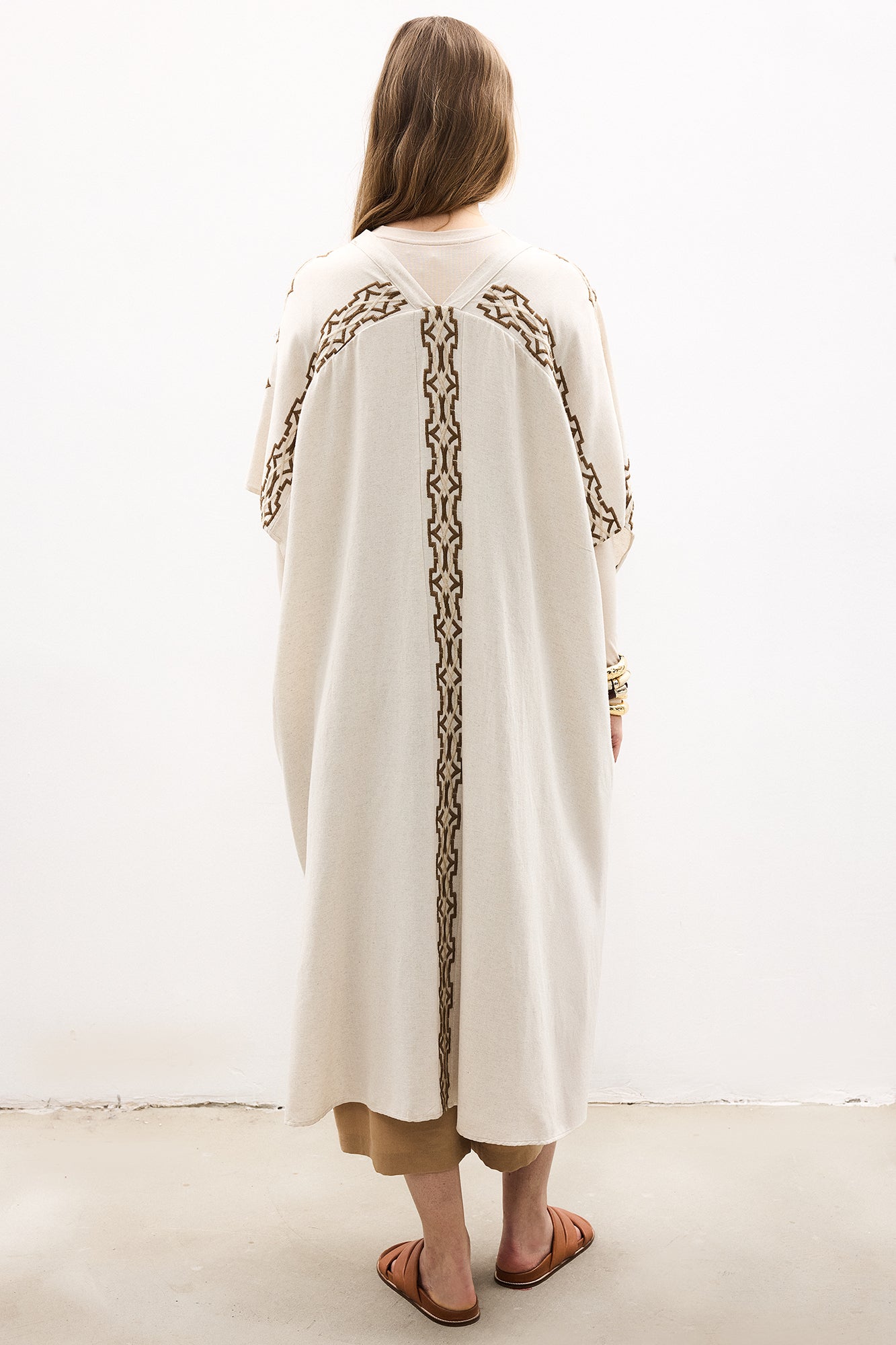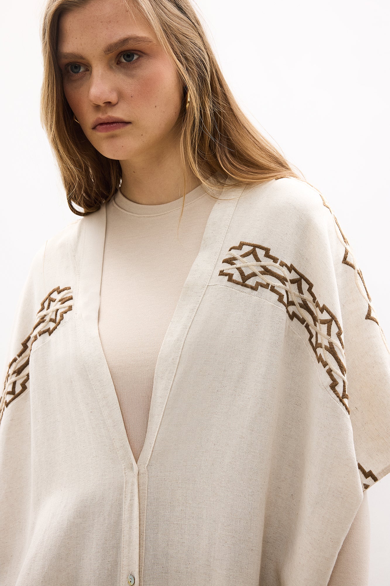 KETEN NAKIŞLI KOLSUZ KİMONO