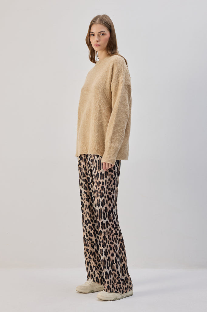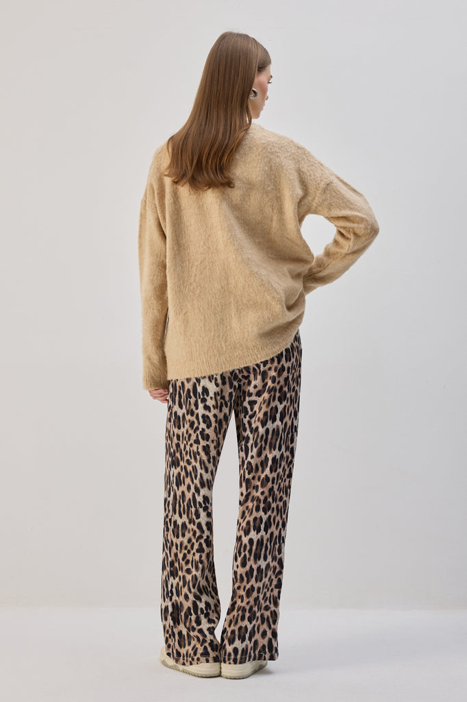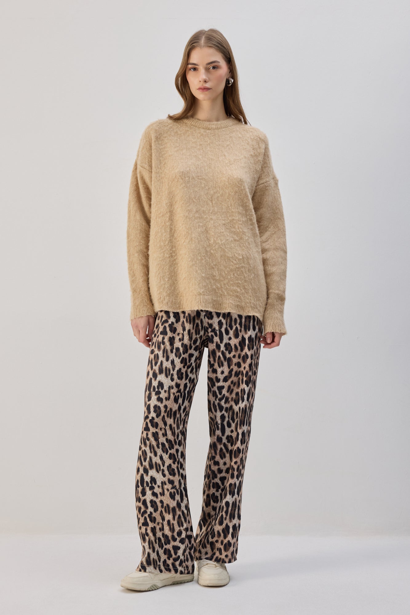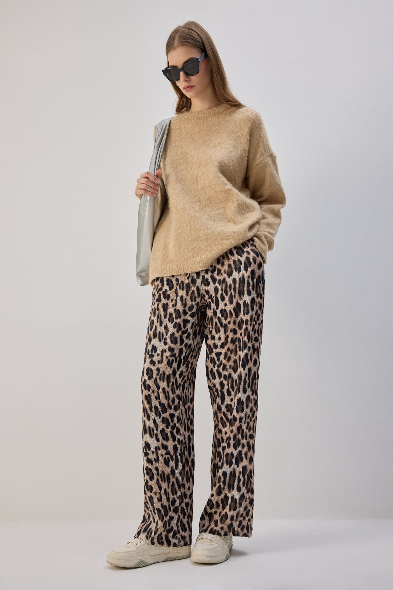 LEOPAR DESENLİ BELİ LASTİKLİ PANTOLON