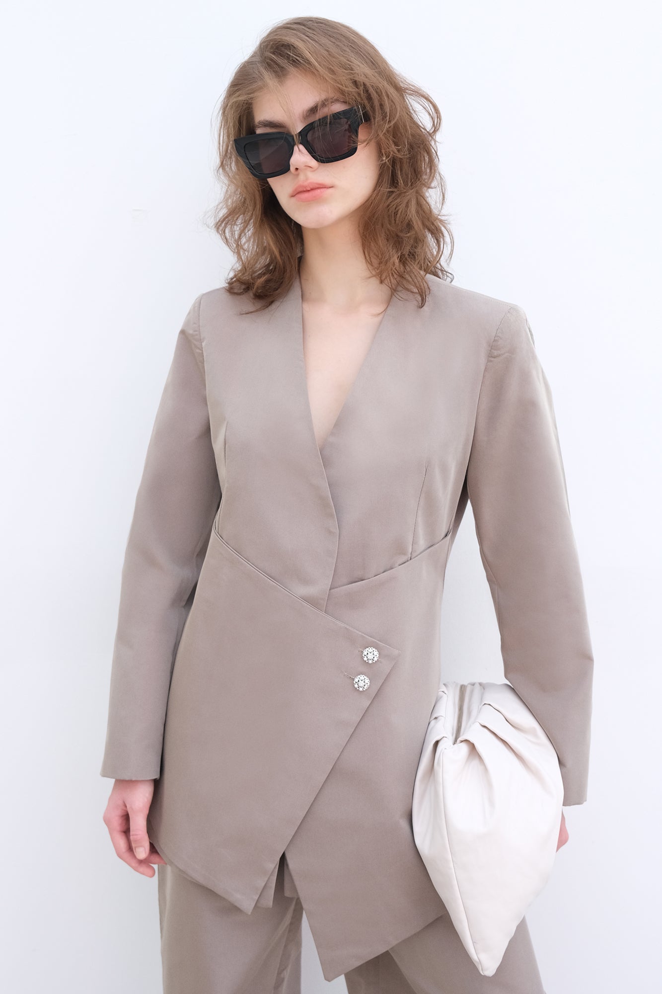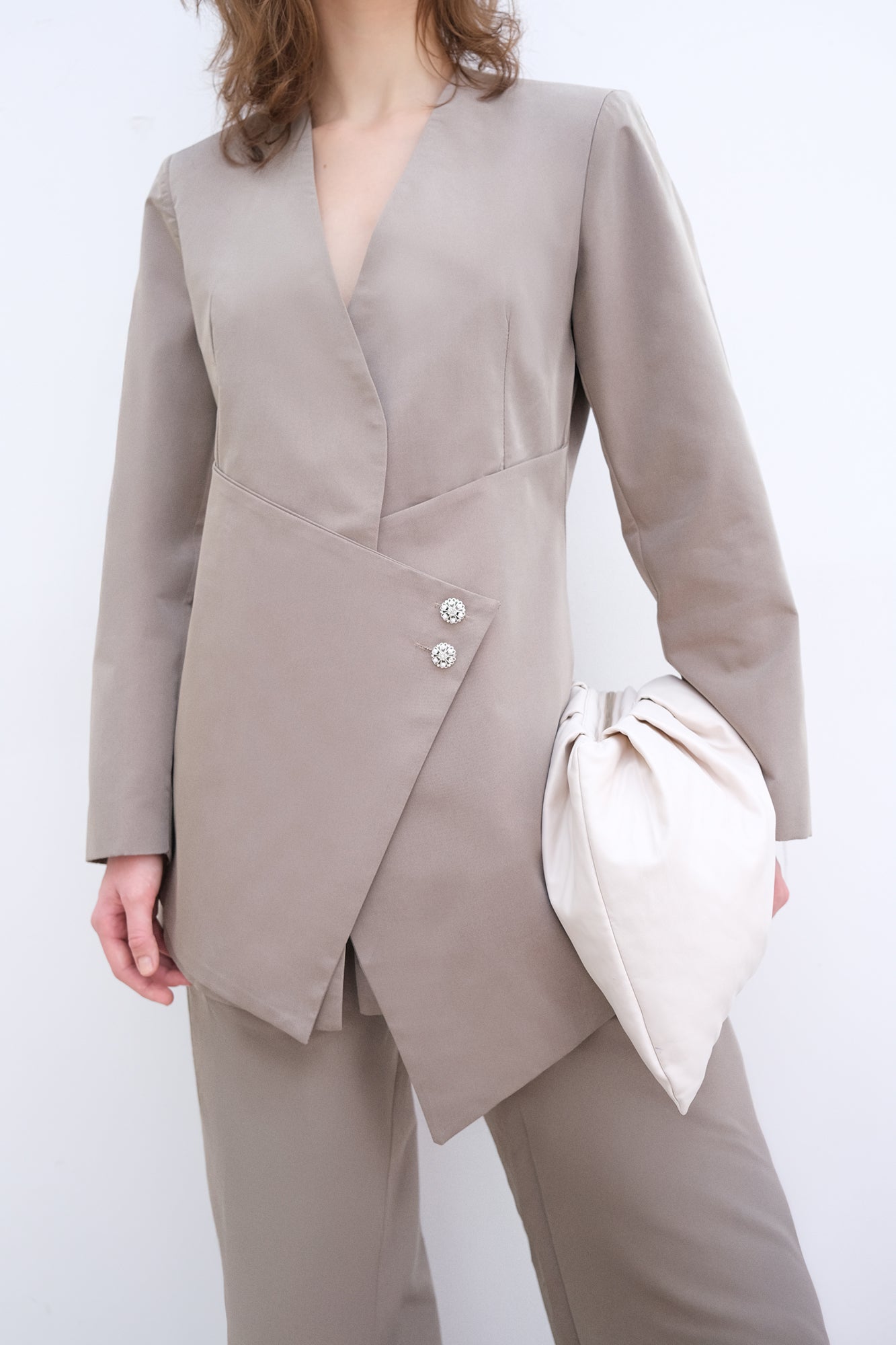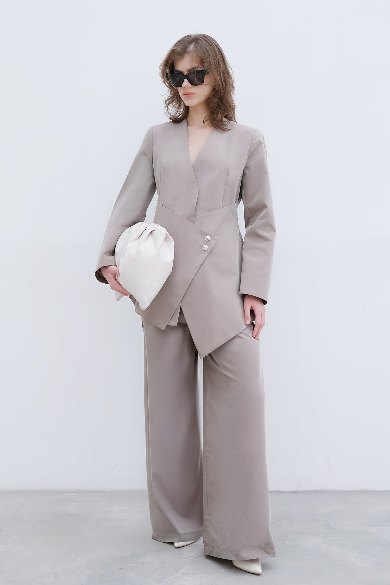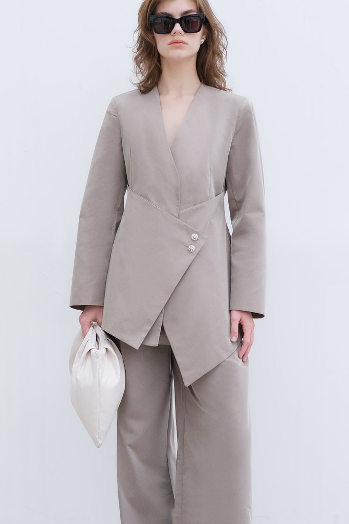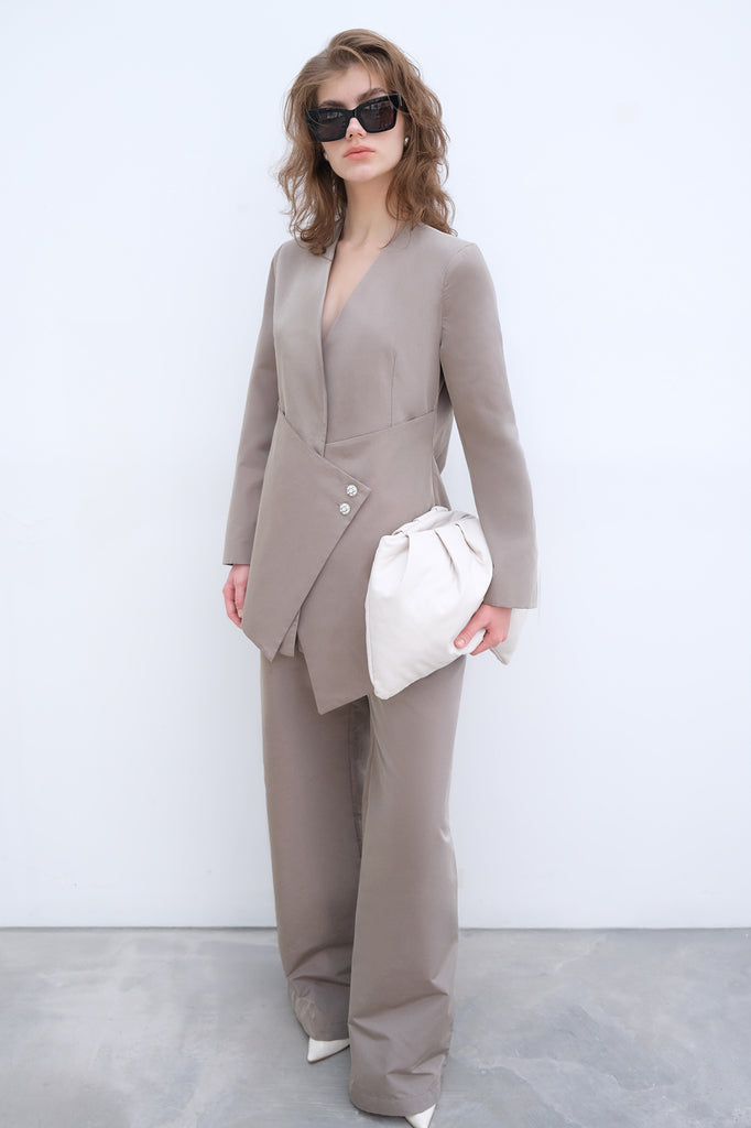 DÜĞME DETAYLI ASİMETRİK CEKET PANTOLON TAKIM