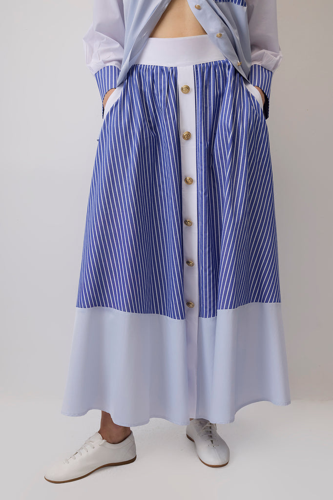 KONTRAST ÇİZGİLİ GÖMLEK ETEK TAKIM