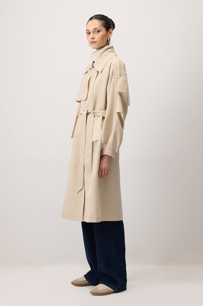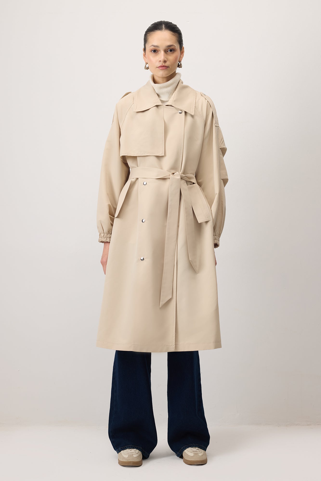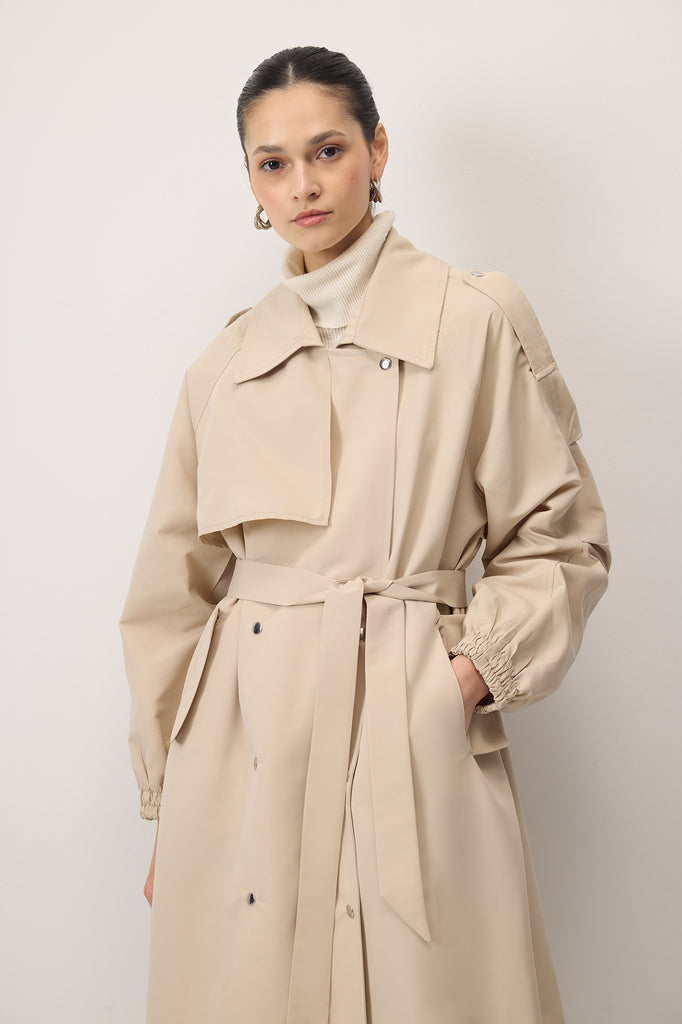 KOLU LASTİKLİ OVERSİZE TRENÇKOT