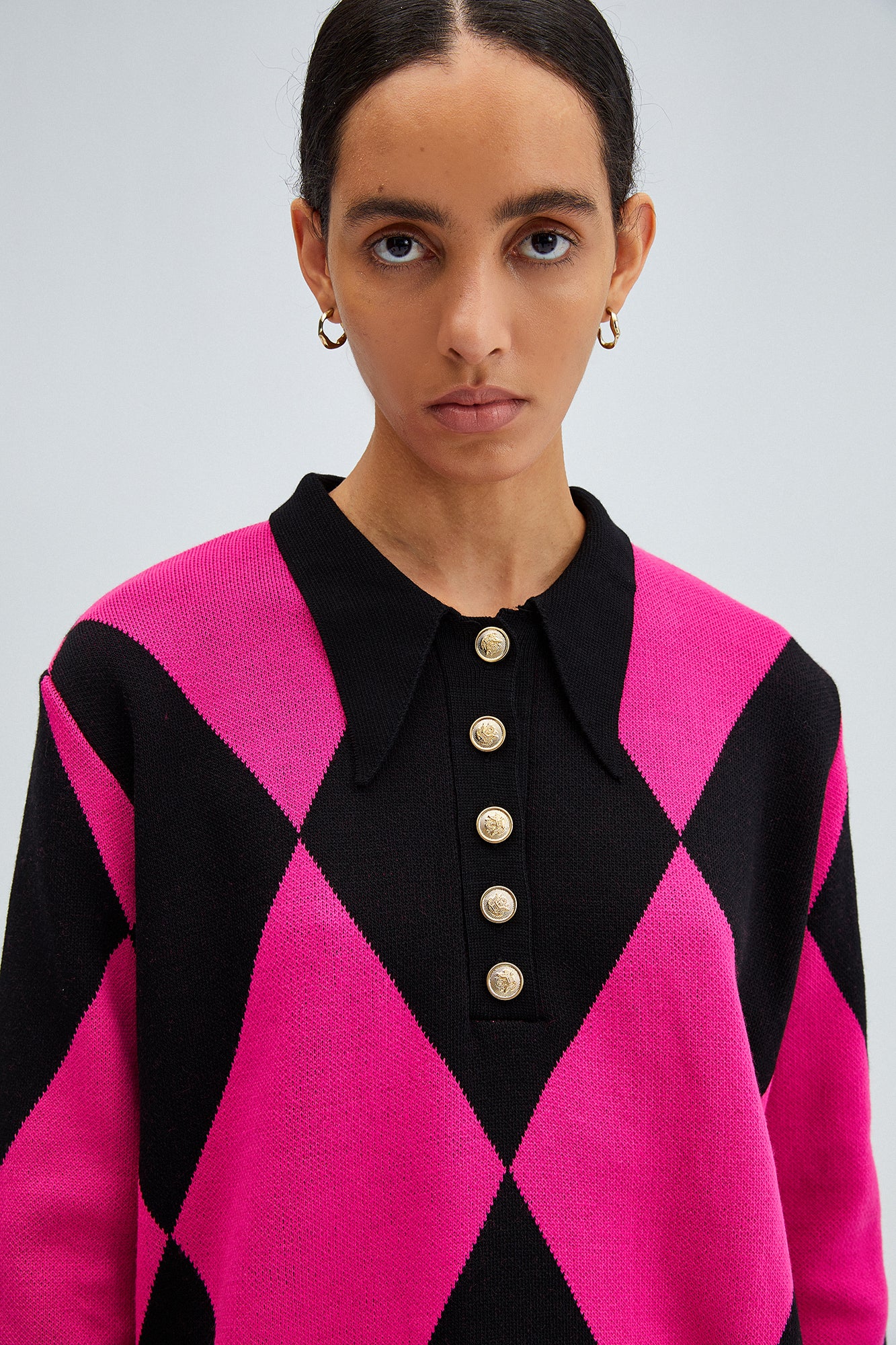 BAKLAVA DESENLİ POLO YAKA TRİKO TUNİK