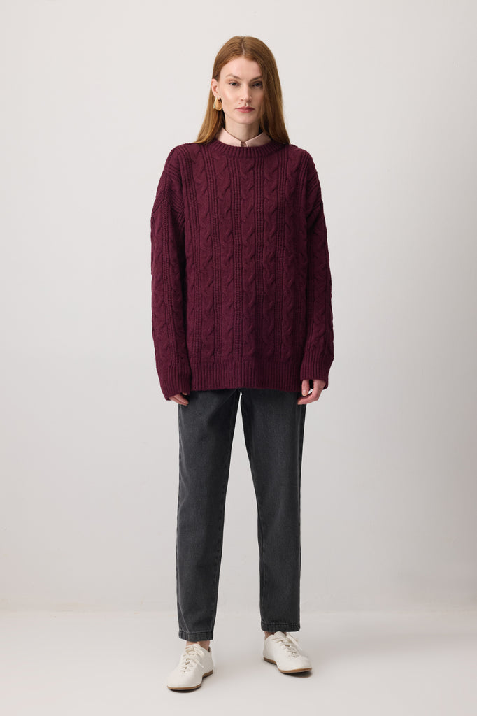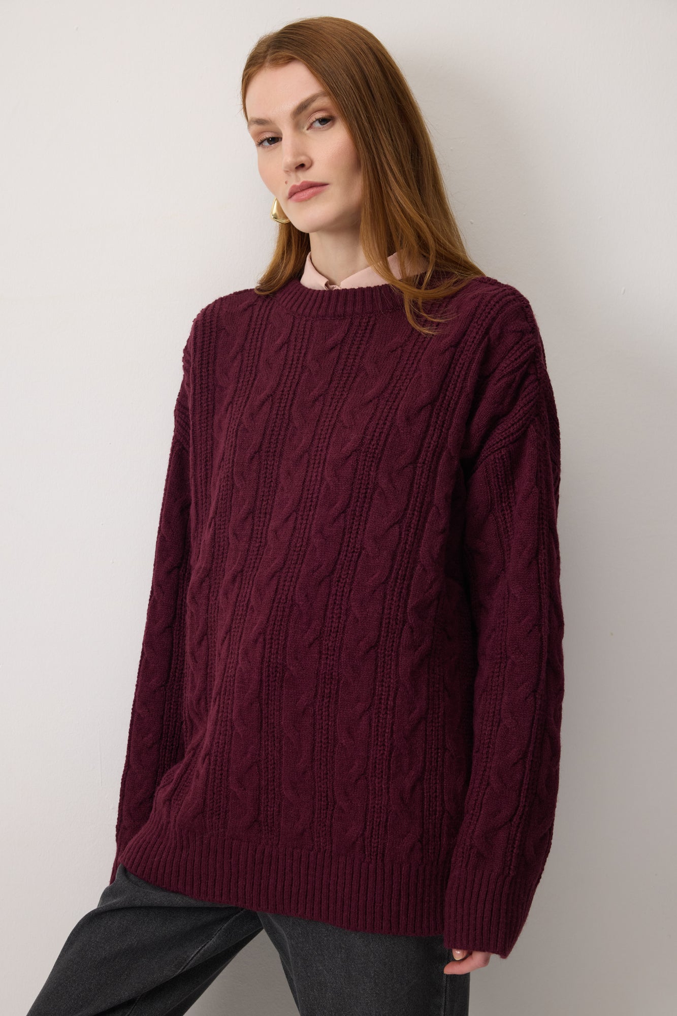 ÖRGÜ DETAYLI OVERSİZE KAZAK