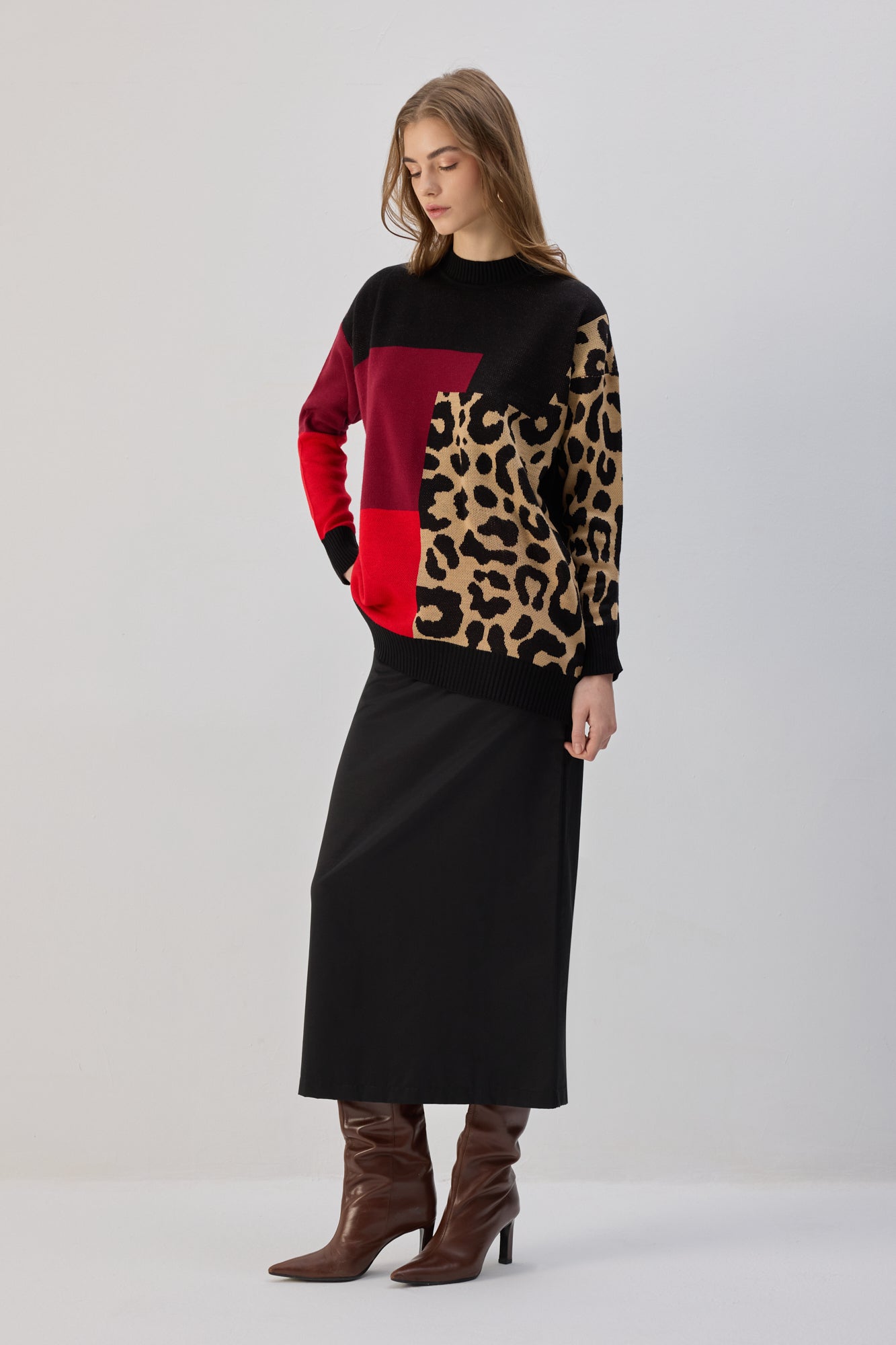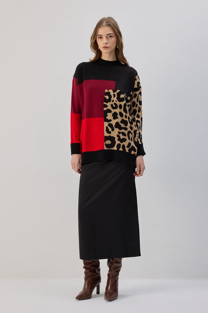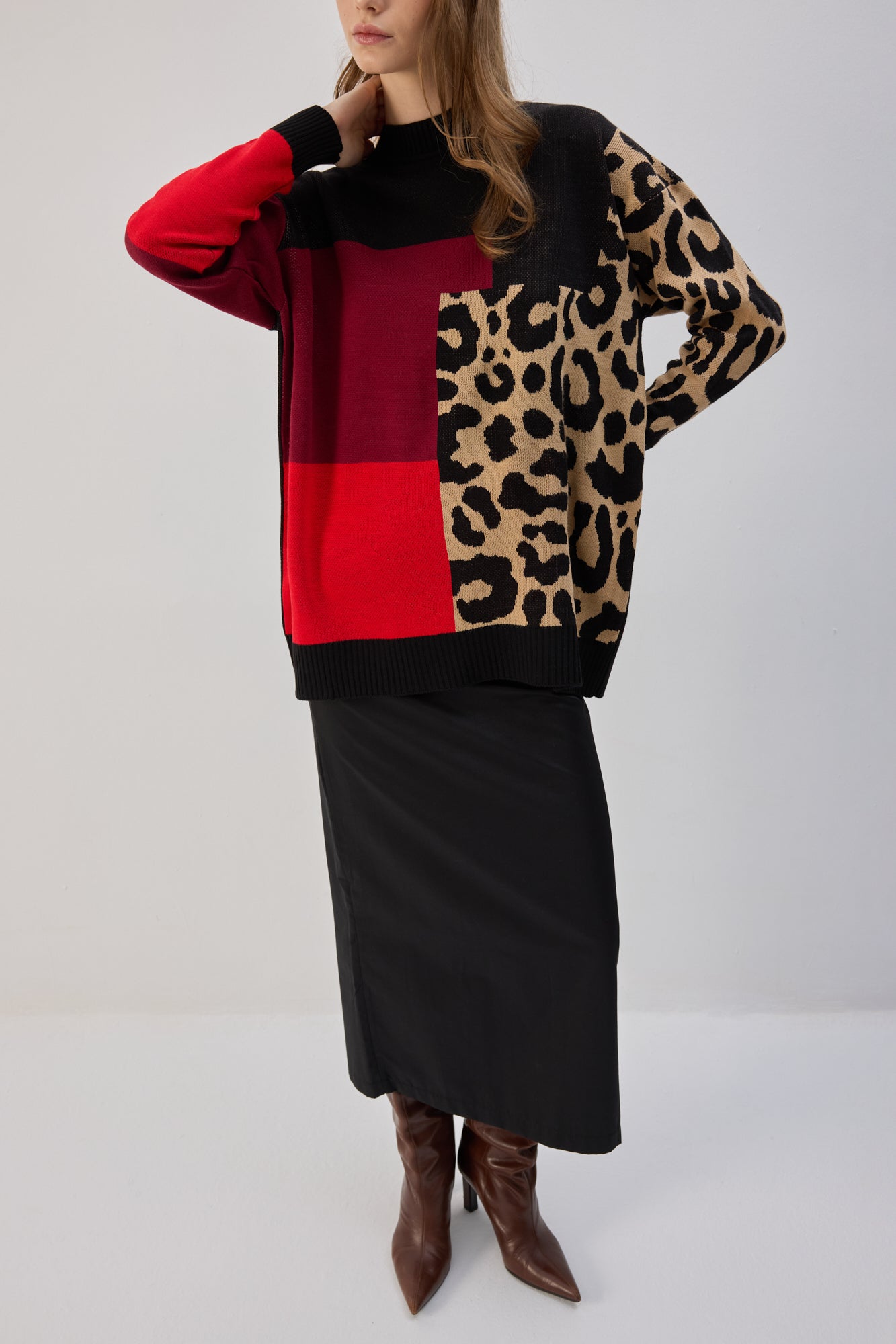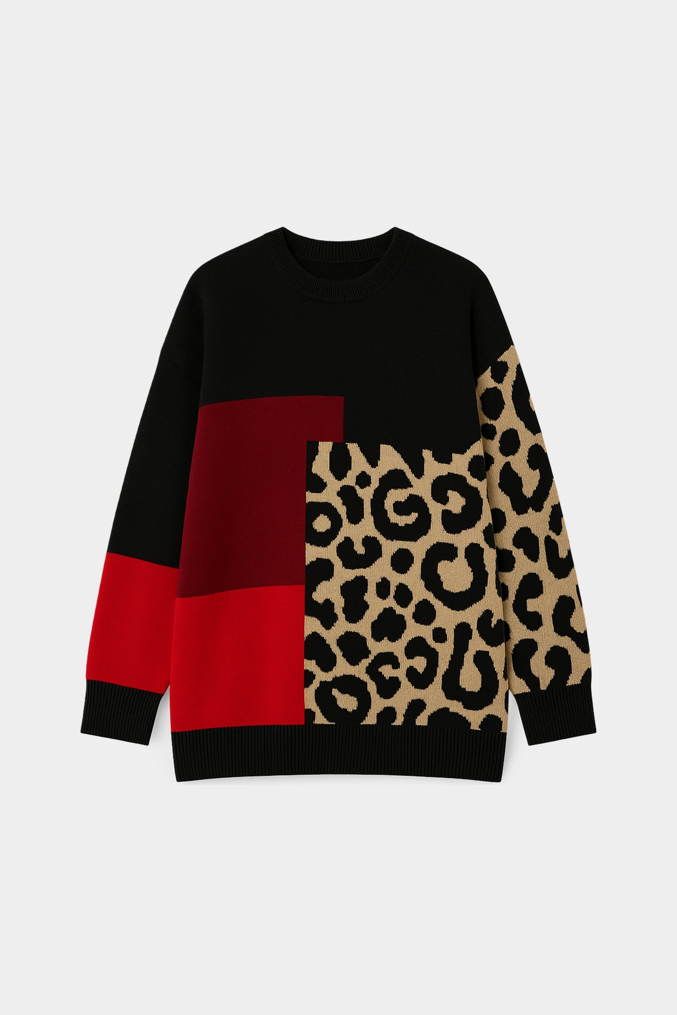 LEOPAR BLOK DESENLİ TRİKO KAZAK