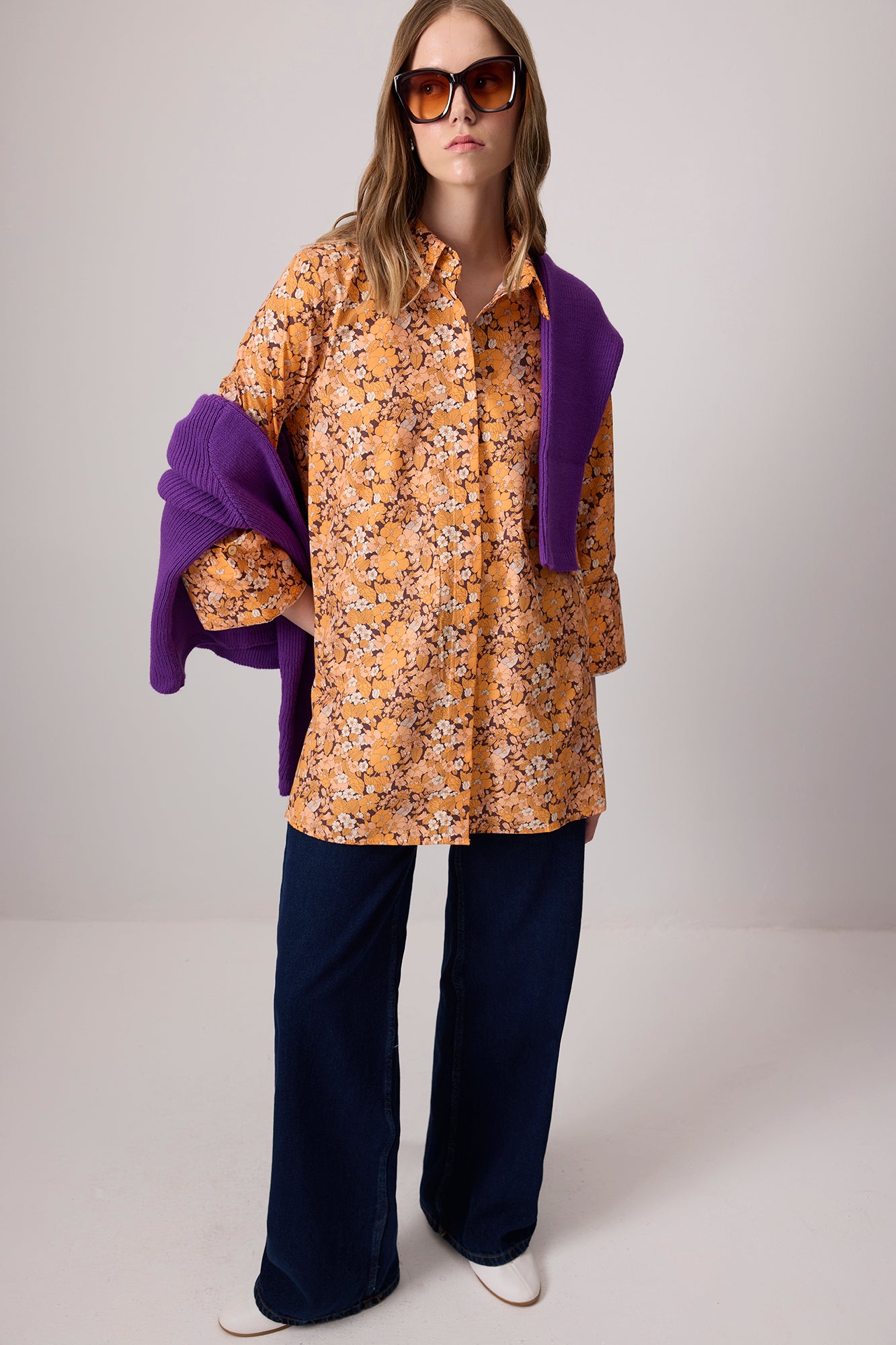 ÇİÇEK DESENLİ PAMUKLU GÖMLEK