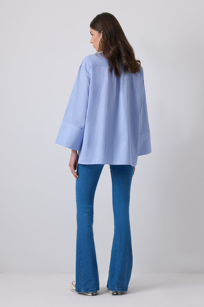 %100 PAMUKLU FİYONK DETAYLI ÇİZGİLİ GÖMLEK