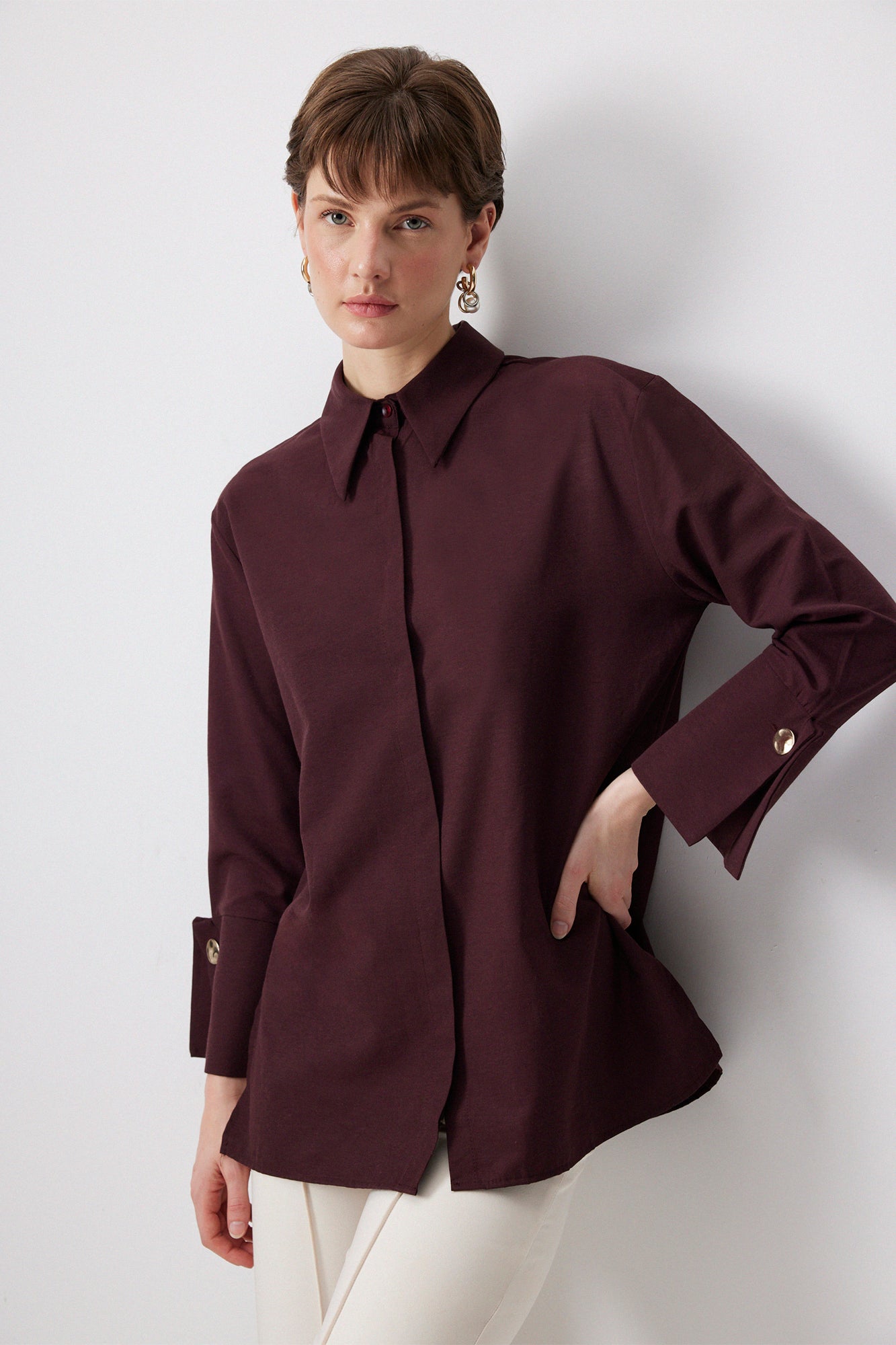 GENİŞ MANŞETLİ POPLİN GÖMLEK