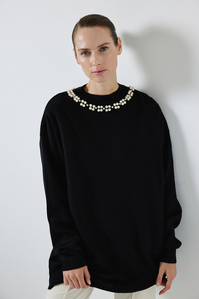 ÖRGÜ DETAYLI OVERSİZE KAZAK