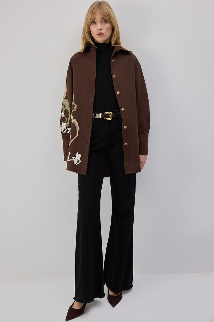 ÇİÇEK APLİKELİ POPLİN GÖMLEK