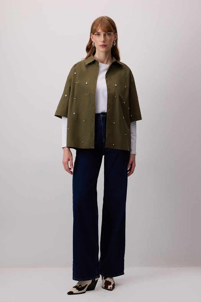 GENİŞ MANŞETLİ KISA POPLİN GÖMLEK