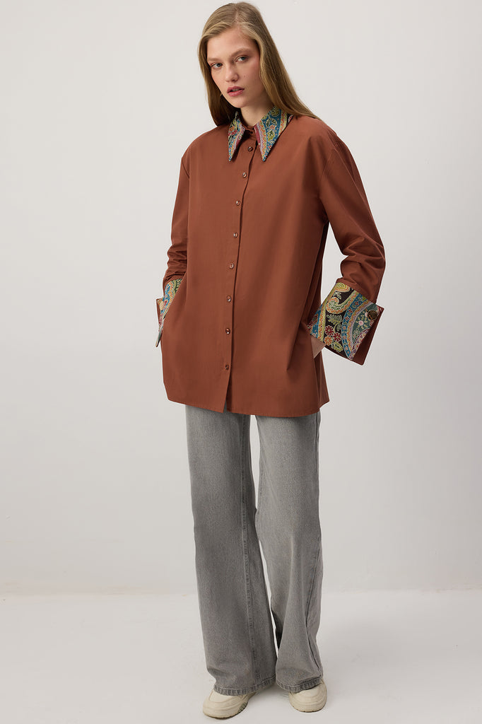 DESENLİ GENİŞ MANŞETLİ POPLİN GÖMLEK