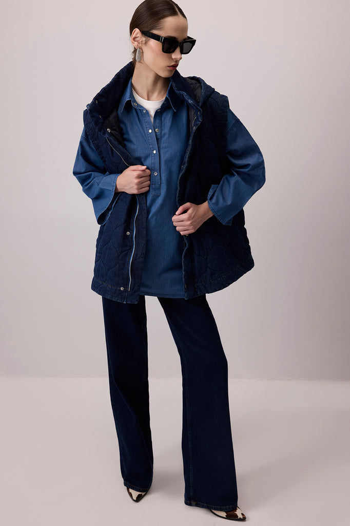 DENİM EFEKTLİ TAŞ İŞLEMELİ OVERSIZE CEKET
